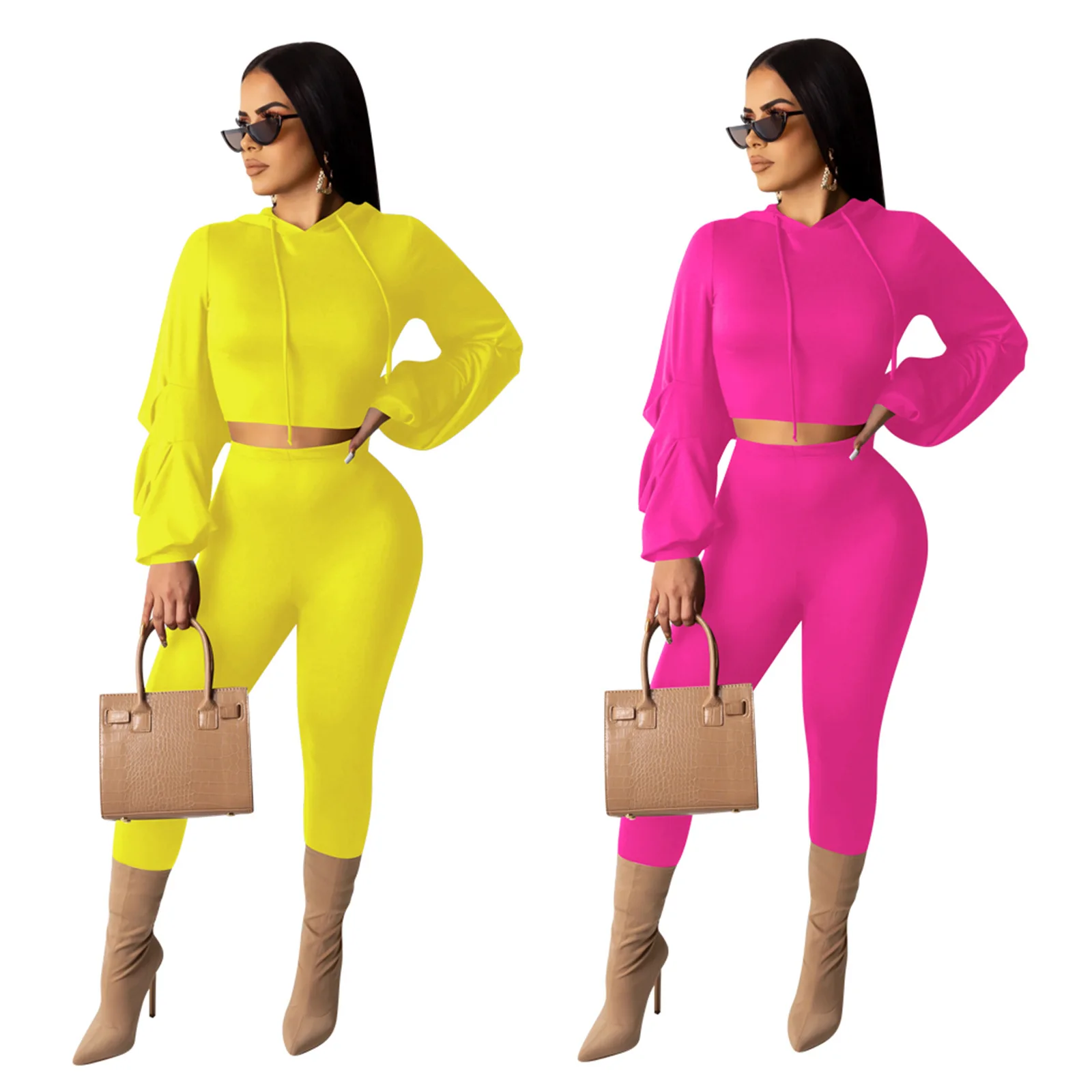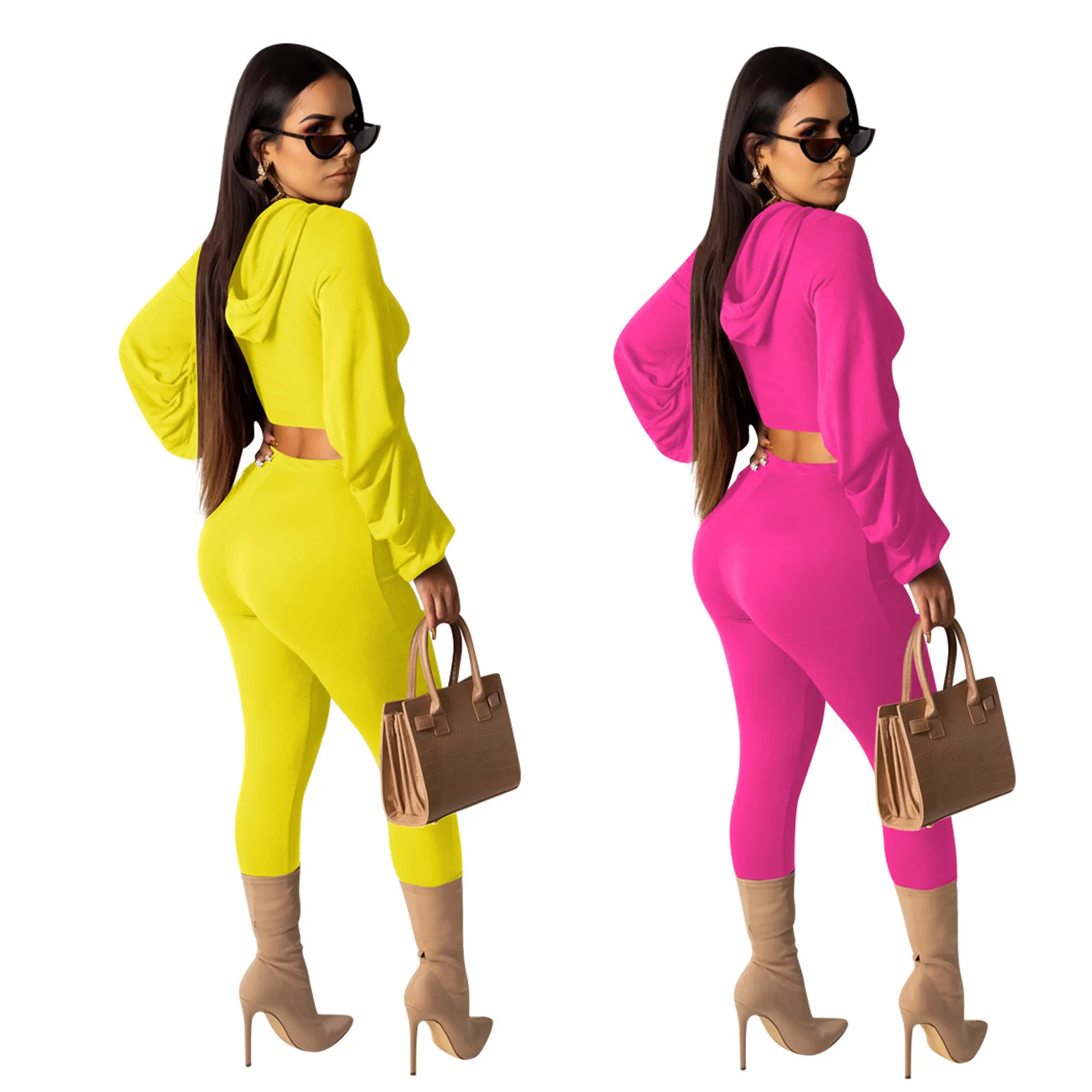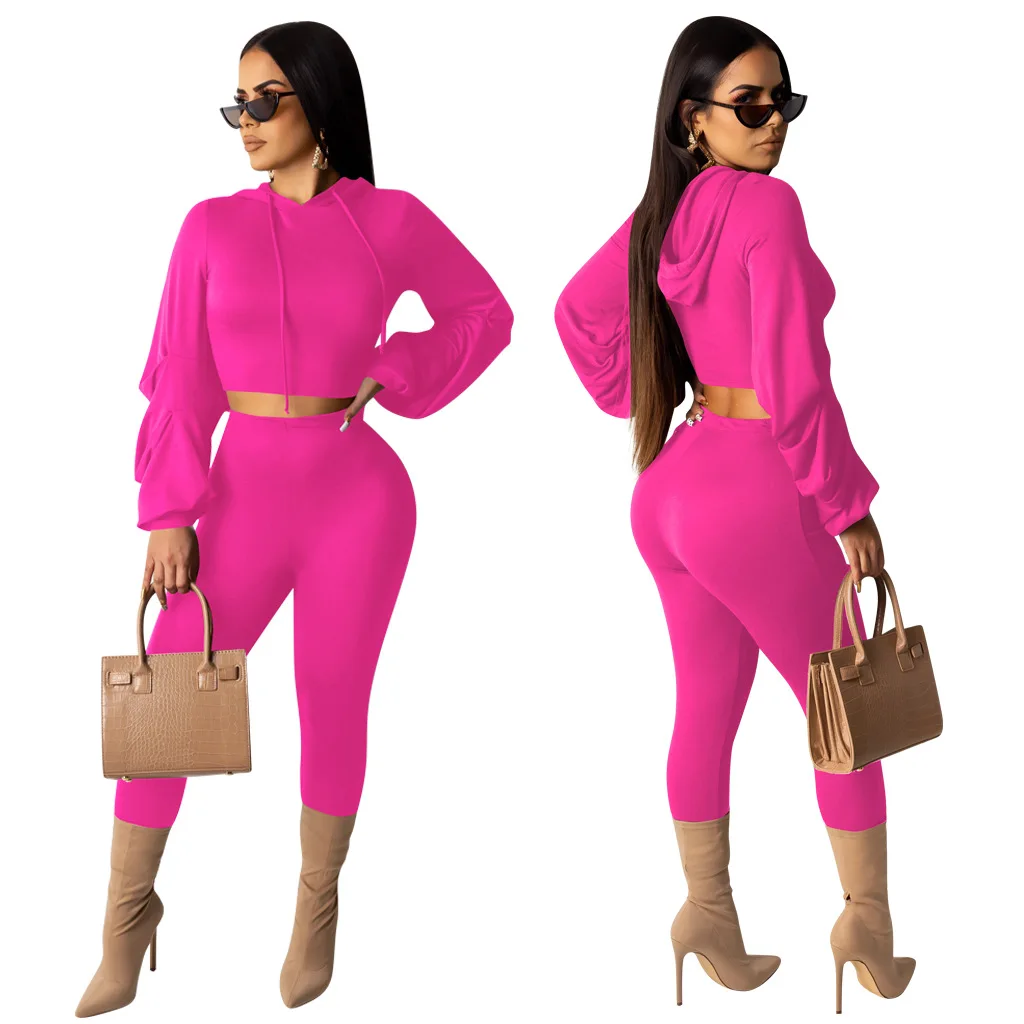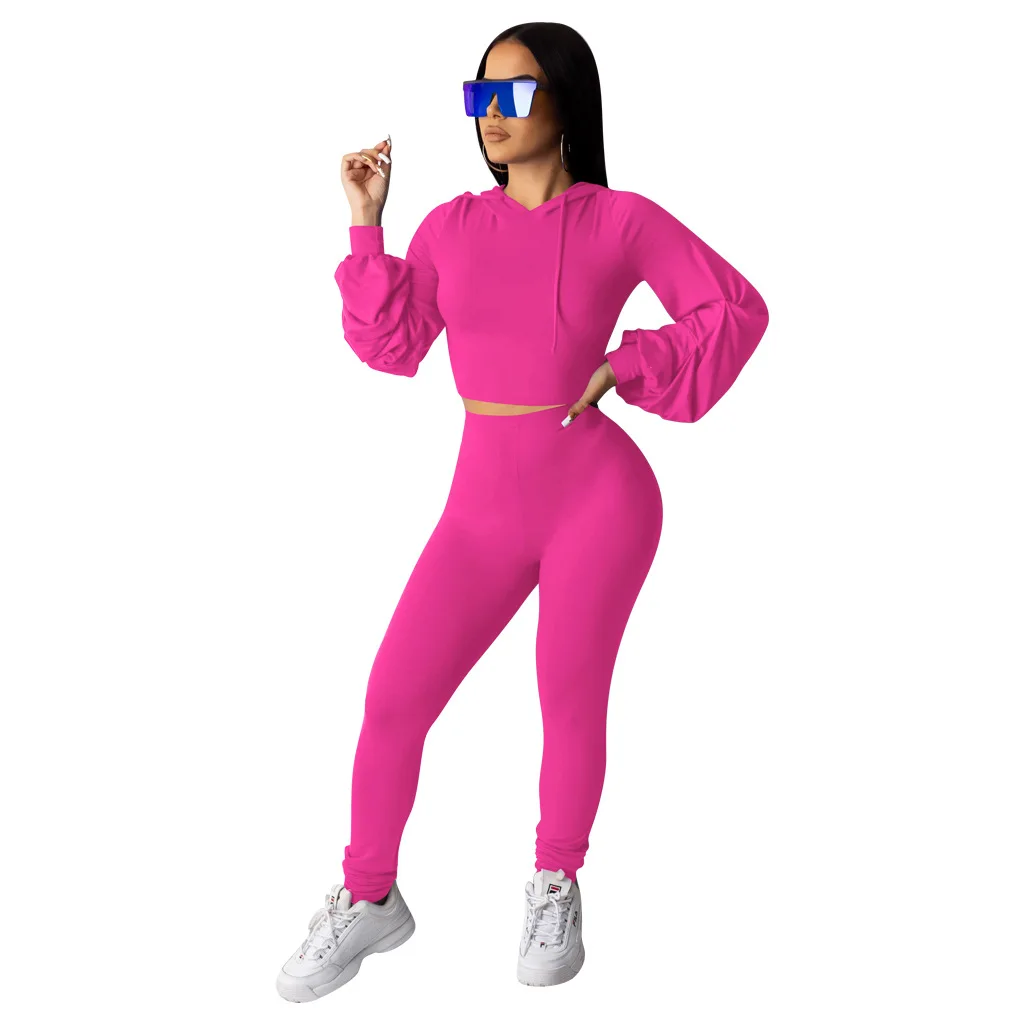 Женский спортивный костюм с капюшоном, одежда из двух предметов для ночного клуба