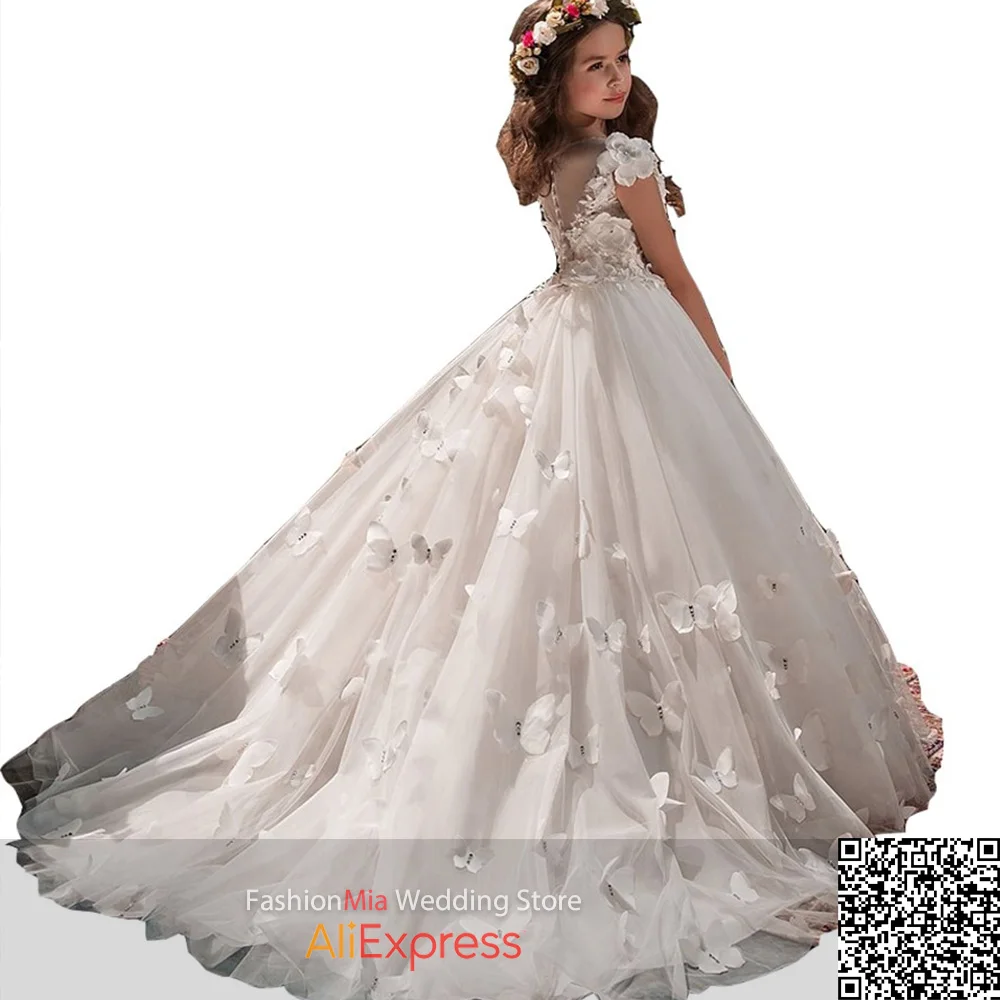 Модные Белые Свадебные Платья с цветочным рисунком для девочек, фатиновая модель для первого причастия, детского выпускного вечера со шлейфом, дня рождения