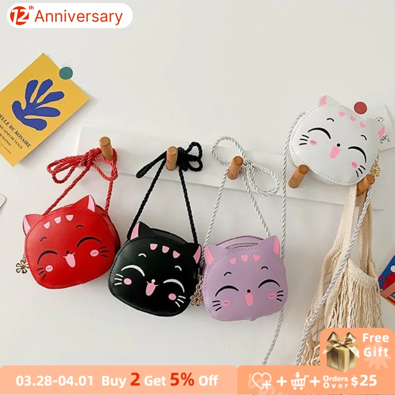 Детская мини сумка через плечо с милым котом, милая детская сумка-кошелек для мальчиков и девочек с животными, маленькие сумки через плечо