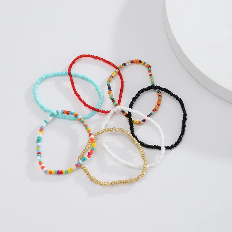 Богемный модный простой ручной эластичный пляжный браслет с бусинам...
