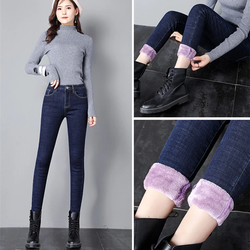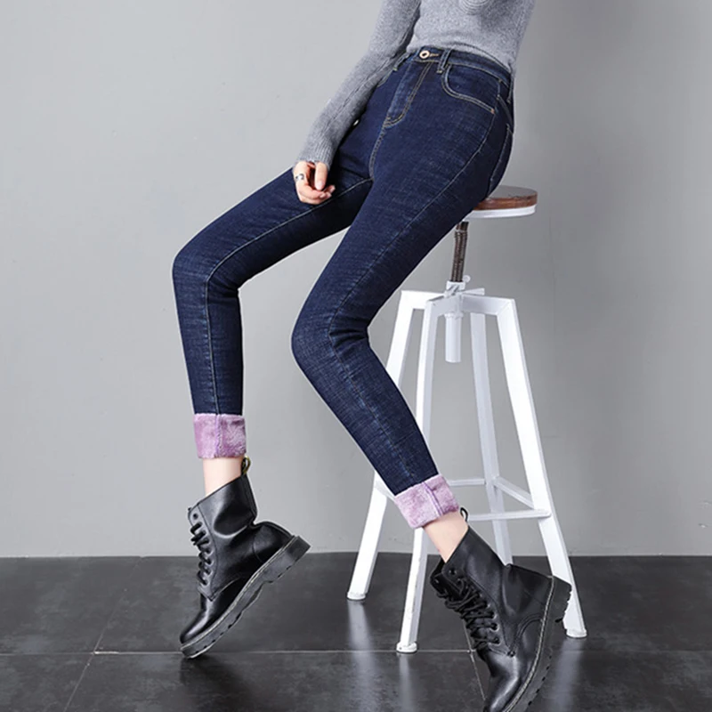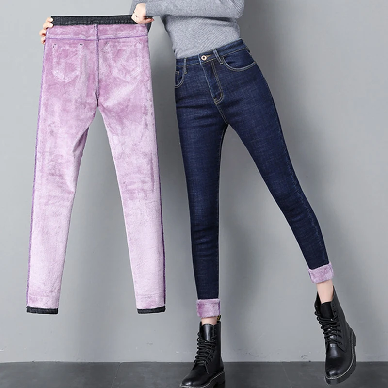 Джинсы джинсовые женские ОсеньЗима 2021 Новинка облегающие универсальные облегающие бархатные брюки-карандаш с высокой талией