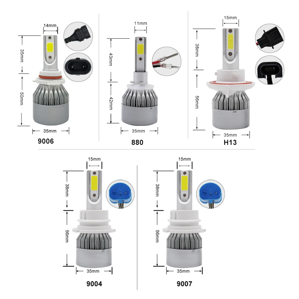 2 шт., Автомобильные светодиодные лампы 4500 лм 6000 К 8000 к 3000 ...