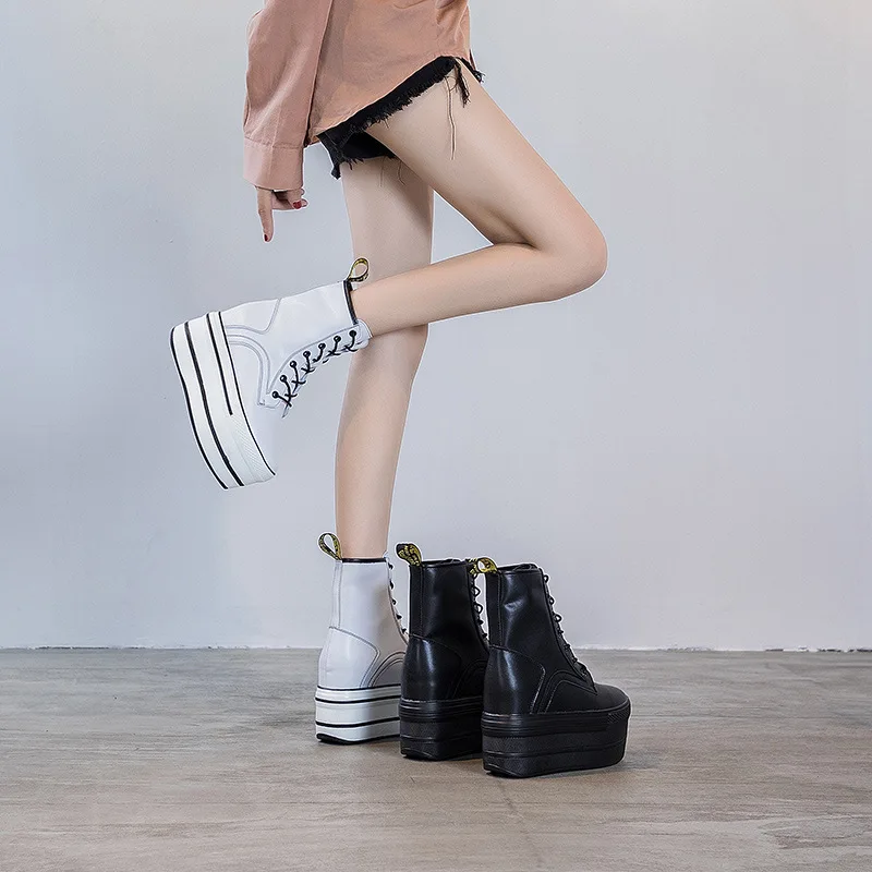 Ботинки мартинсы 10 см, женские кроссовки из натуральной кожи, Бела...