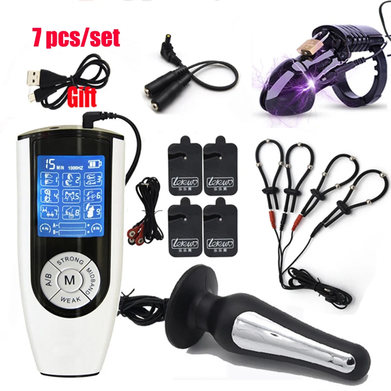 БДСМ электро шок CB6000 клетка целомудрия для пениса E-stim кольцо для пениса Анальная пробка Массажный коврик USB заряжаемый хост медицинский секс-игрушки для мужчин