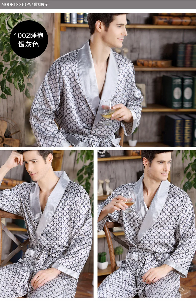 Ночная рубашка мужская атласная, халатный халат-кимоно, повседневная одежда для сна с цветочным принтом, домашняя одежда золотого цвета 3XL, 4XL, 5XL