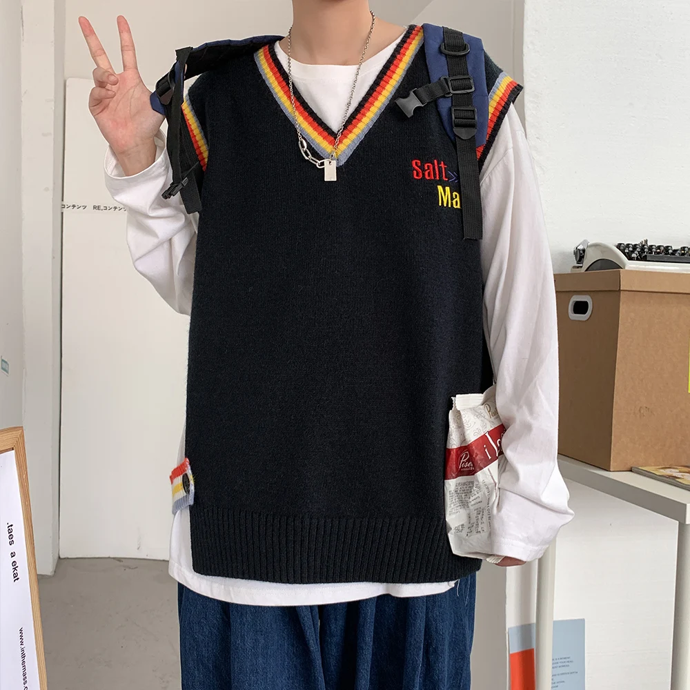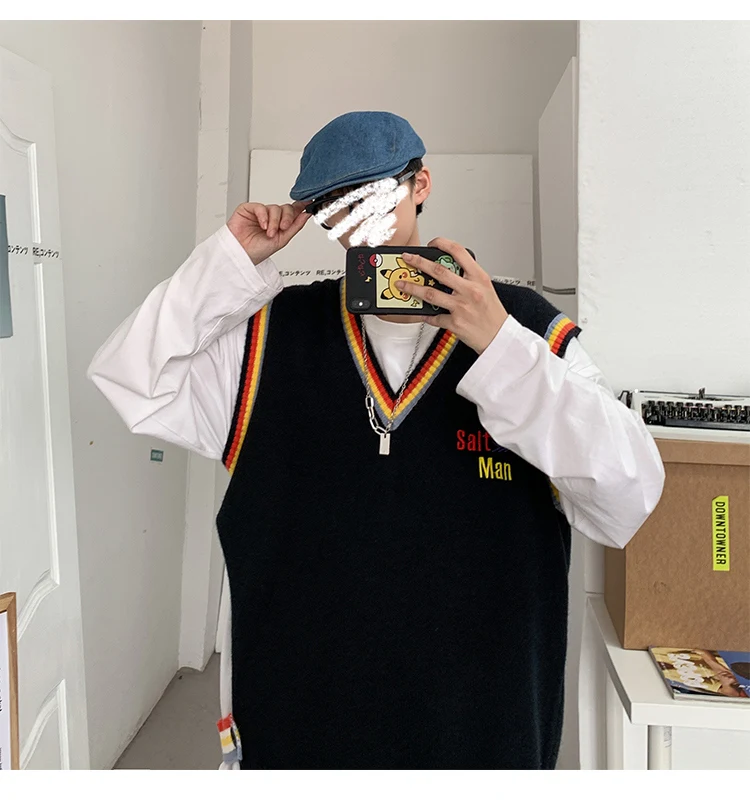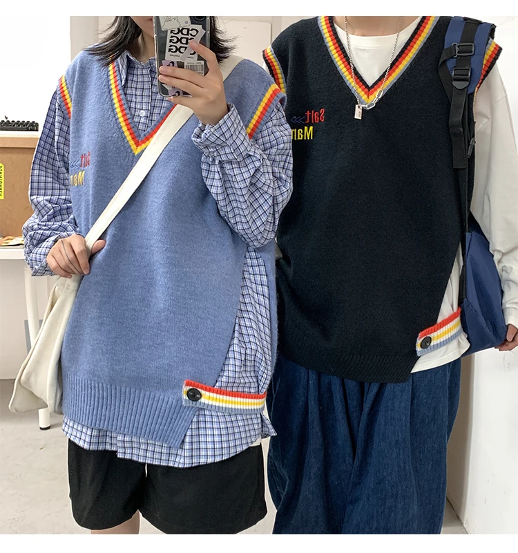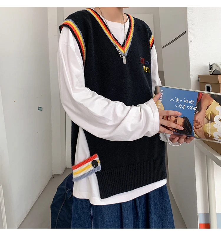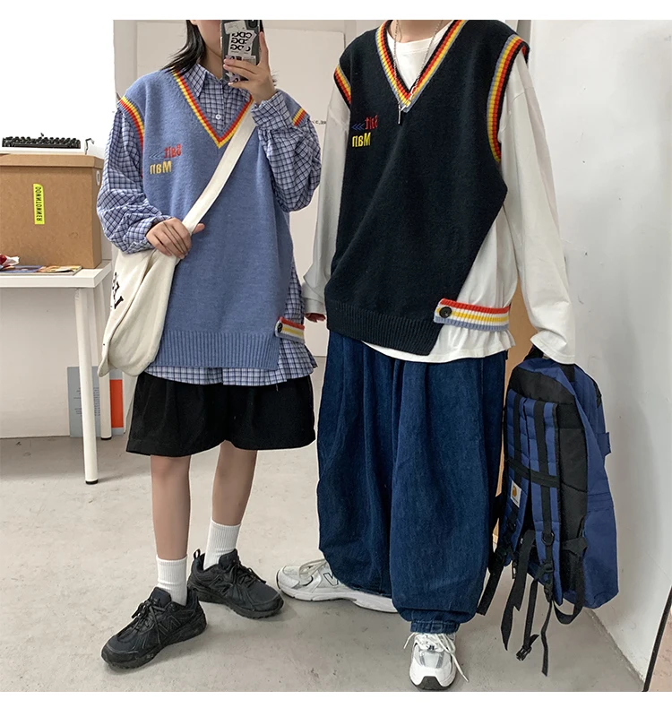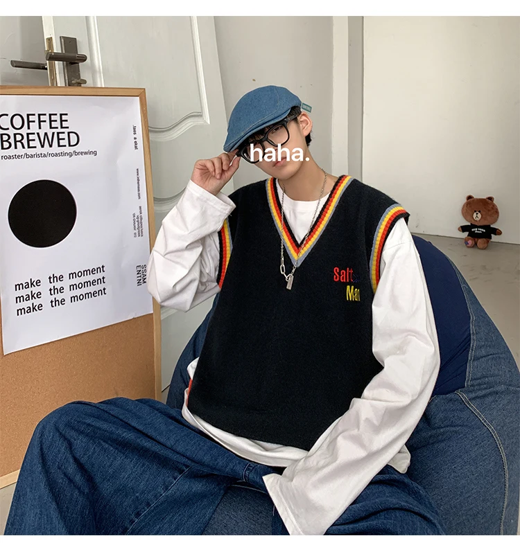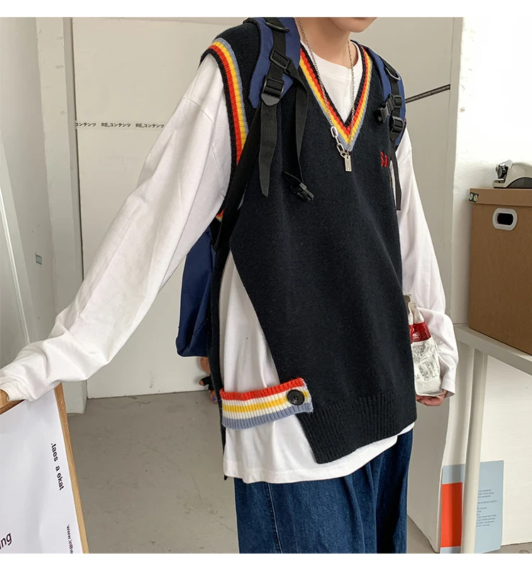 Новинка 2021, мужской материал для сборки в гонконгском стиле, новинка, свободный свитер в рубчик для пары, для подростков, жилет