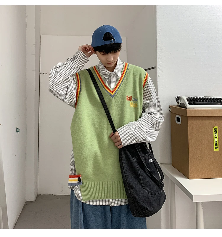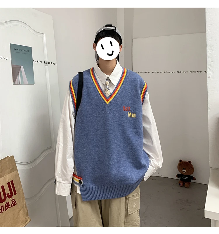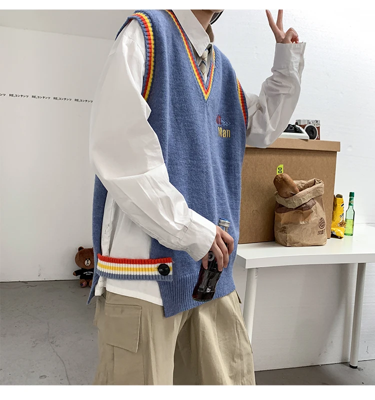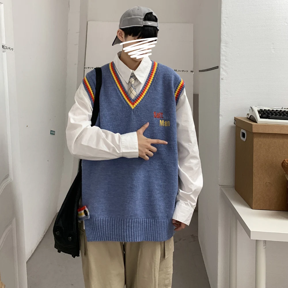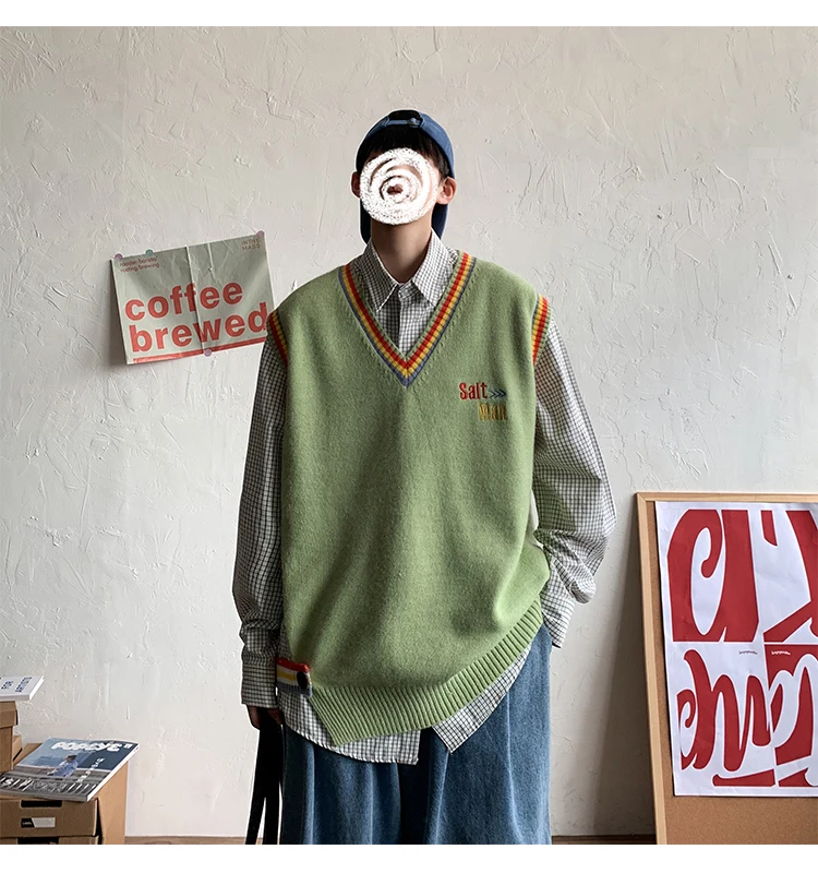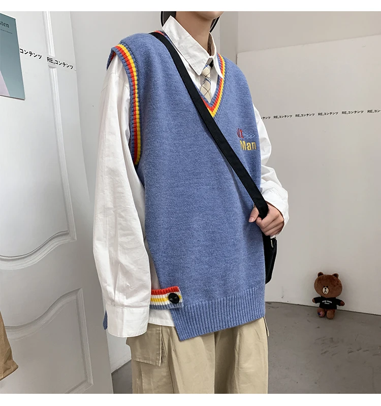 Новинка 2021, мужской материал для сборки в гонконгском стиле, новинка, свободный свитер в рубчик для пары, для подростков, жилет