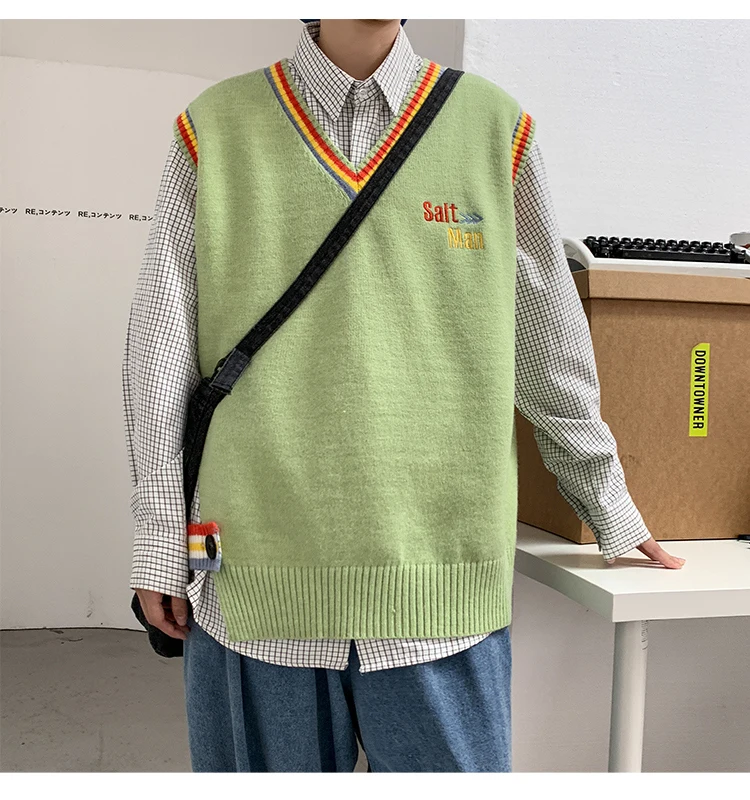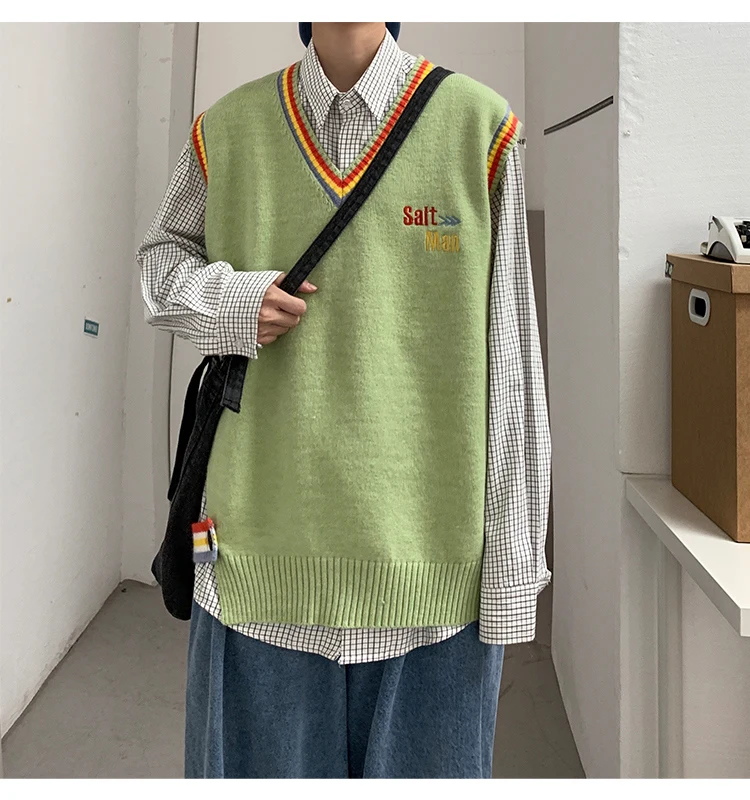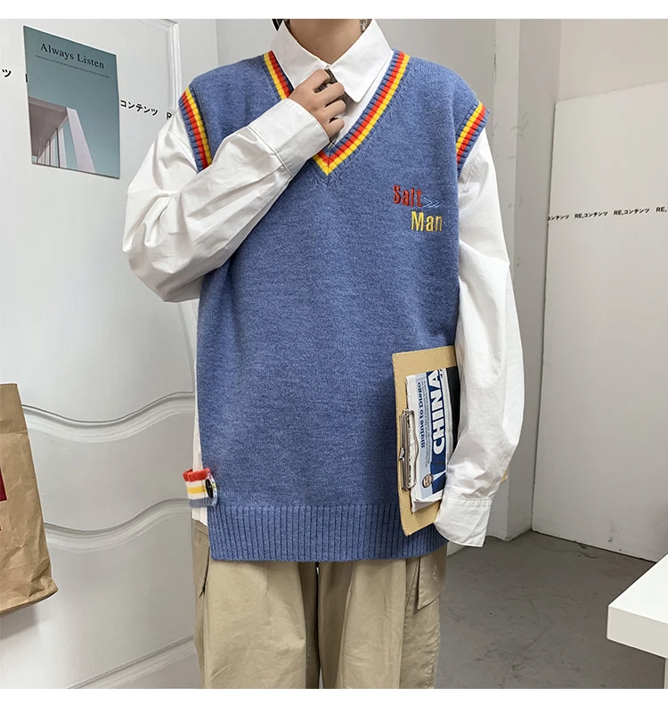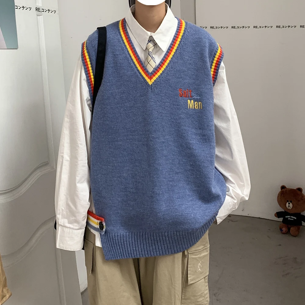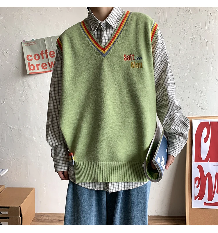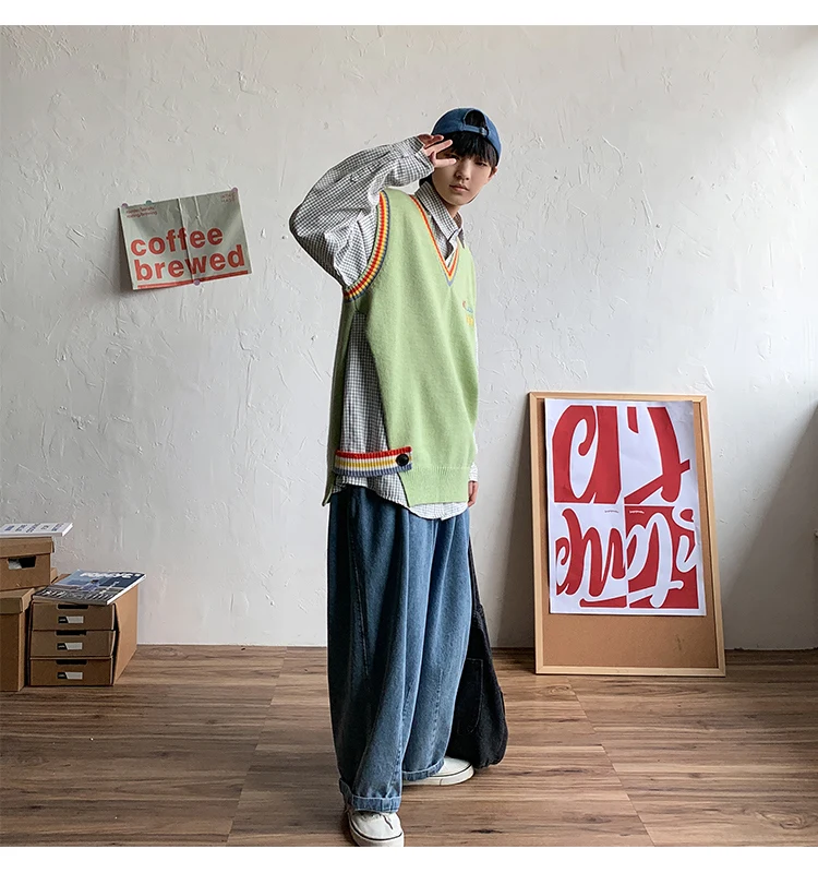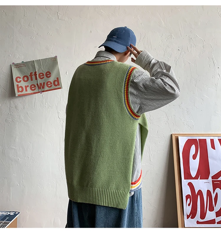 Новинка 2021, мужской материал для сборки в гонконгском стиле, новинка, свободный свитер в рубчик для пары, для подростков, жилет