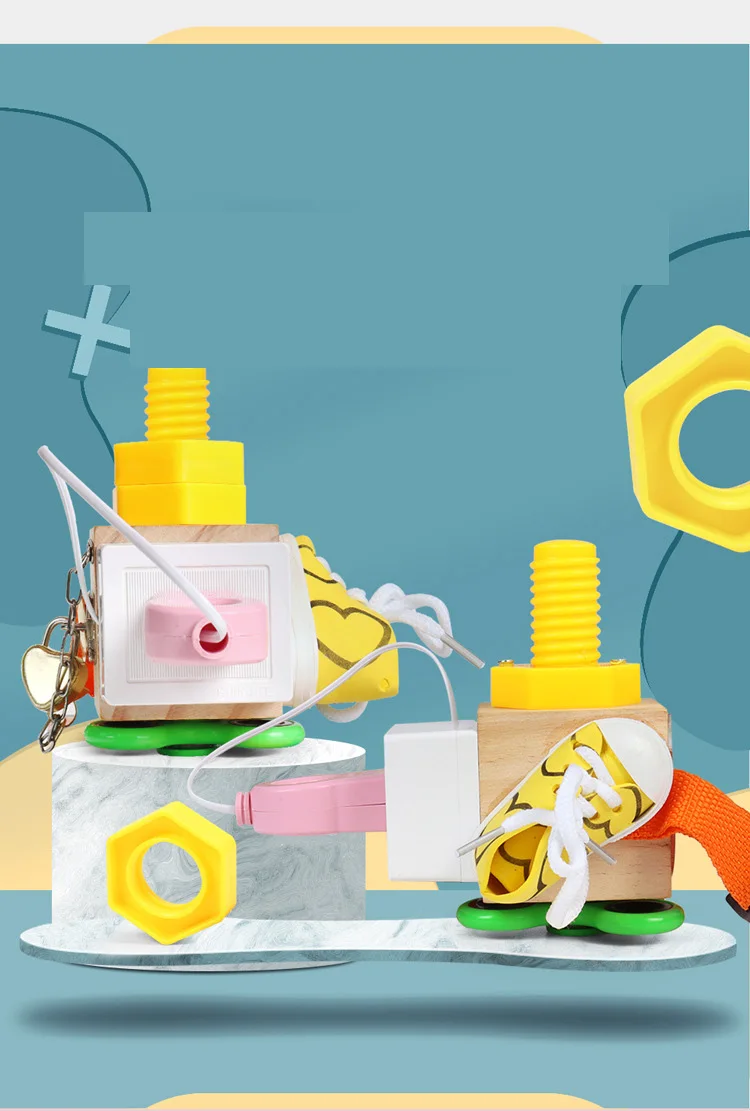 Деревянный интерактивный строительный блок Монтессори для малышей, ...