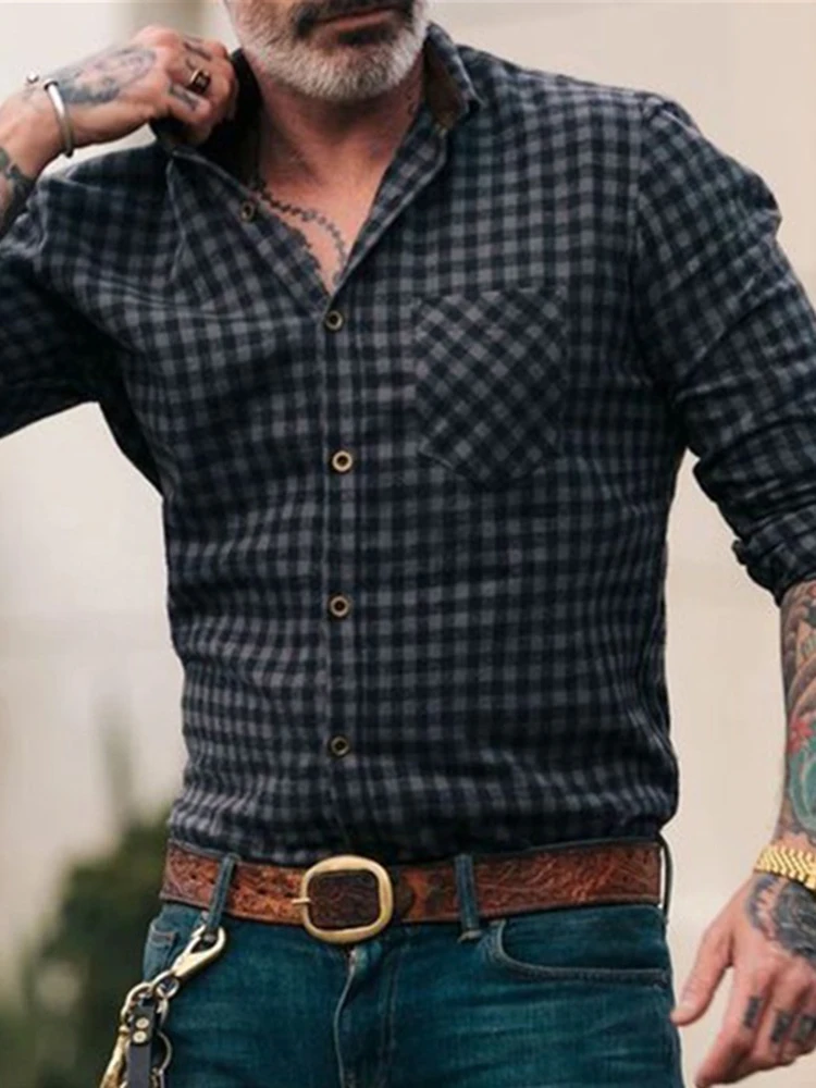 Рубашка мужская в клетку, с отложным воротником и длинным рукавом