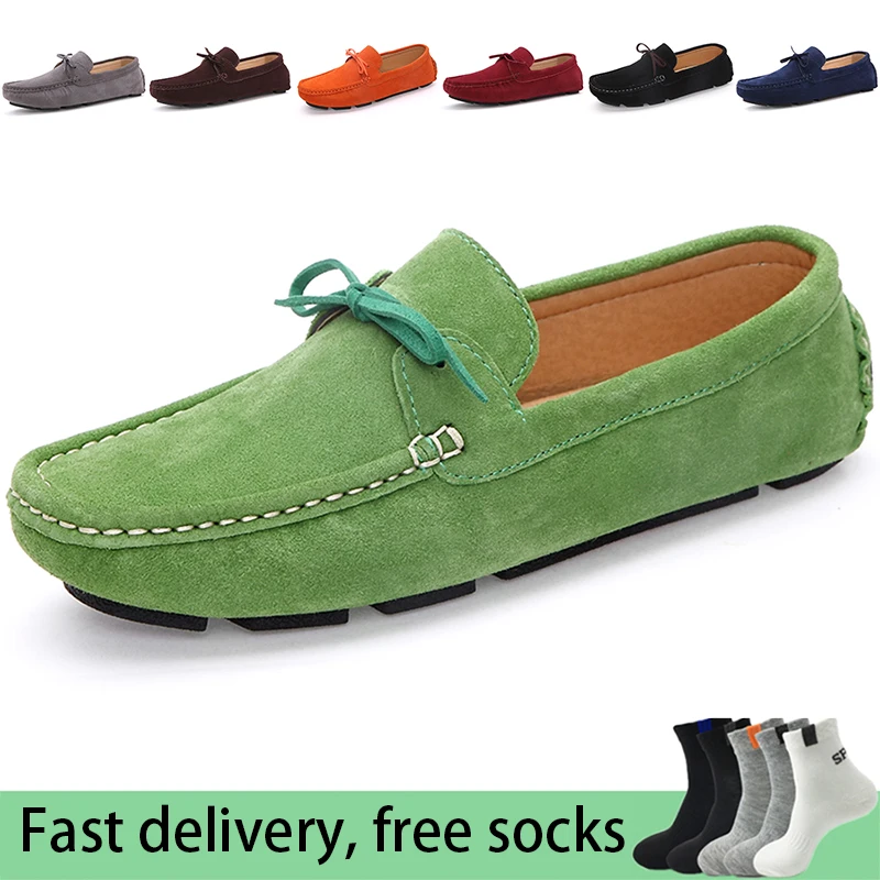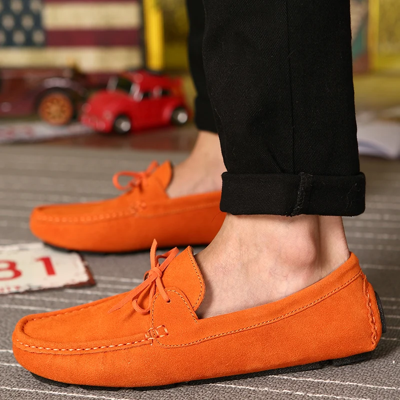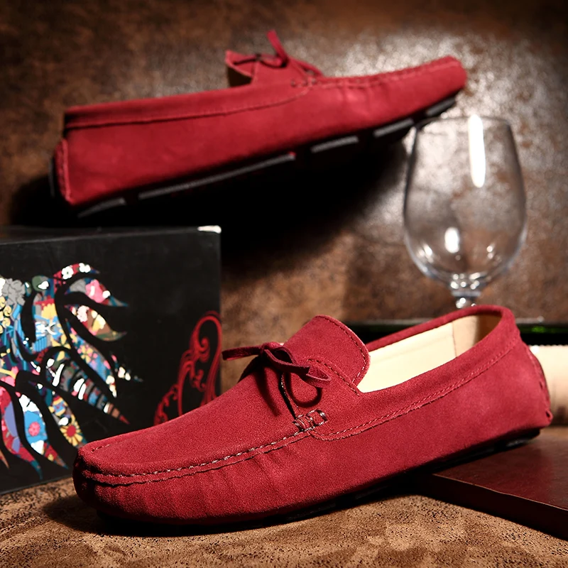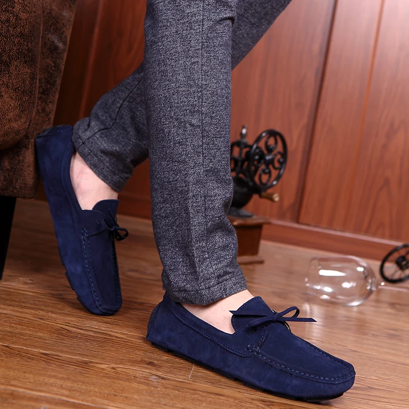 Мокасины из натуральной замши для мужчин и женщин, туфли на плоской подошве, без застежки, повседневная Роскошная обувь для вождения, Размеры 35-44