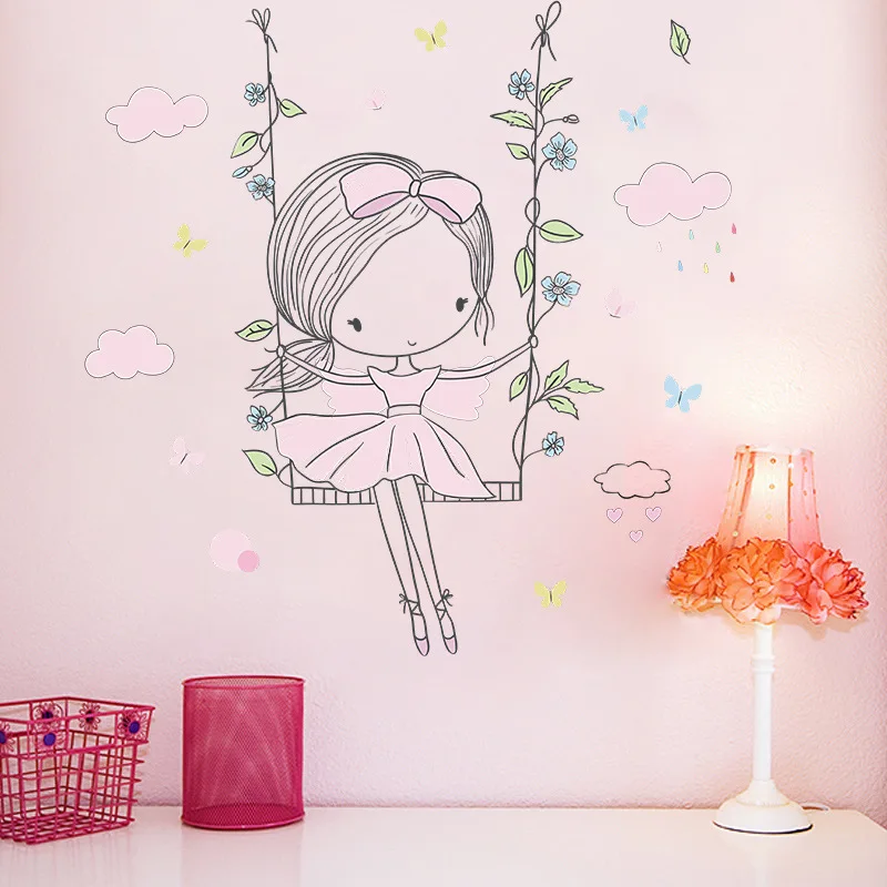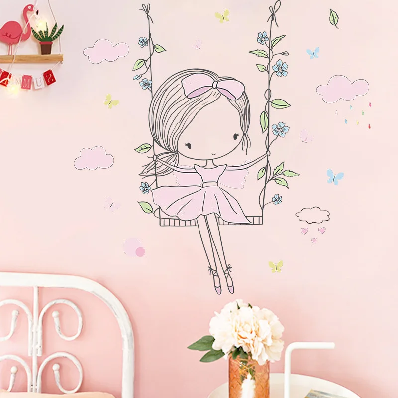 Самоклеящиеся наклейки на стену для маленькой девочки, наклейки на стену для детской спальни, крыльца, детского сада, Украшение стен