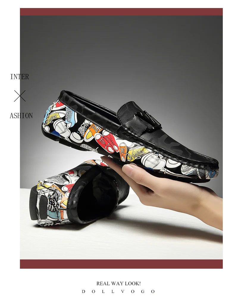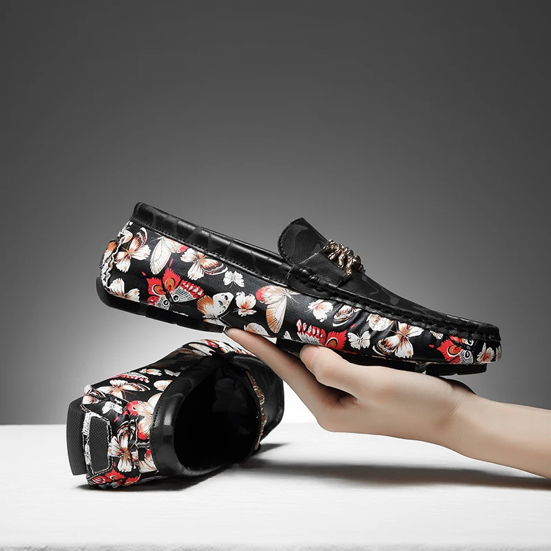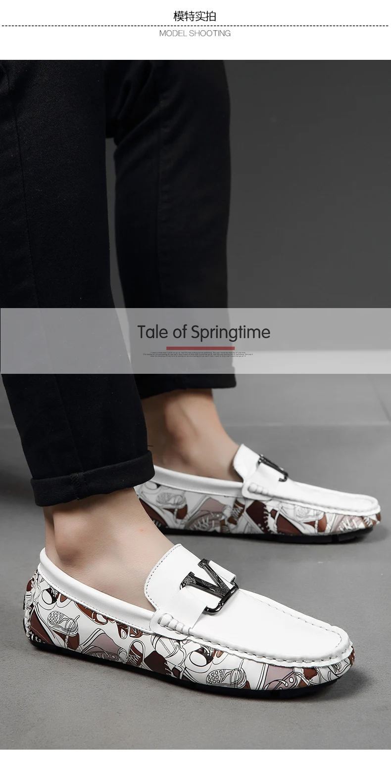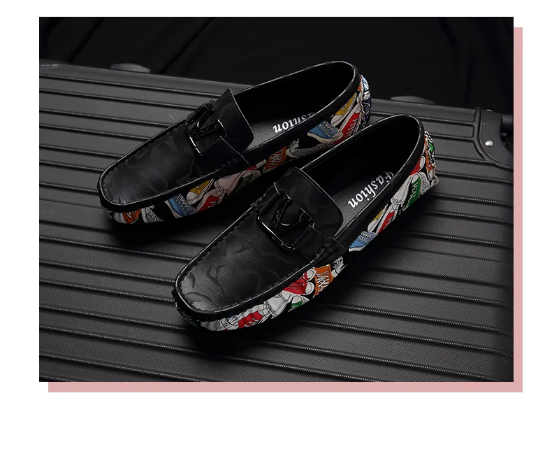 Мужские дизайнерские кожаные туфли с принтом, Повседневные слипоны,...
