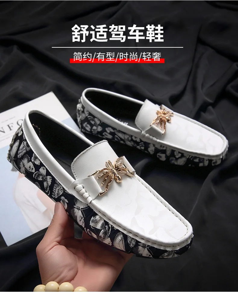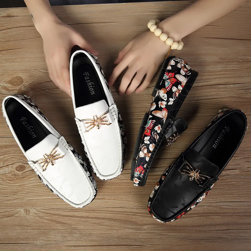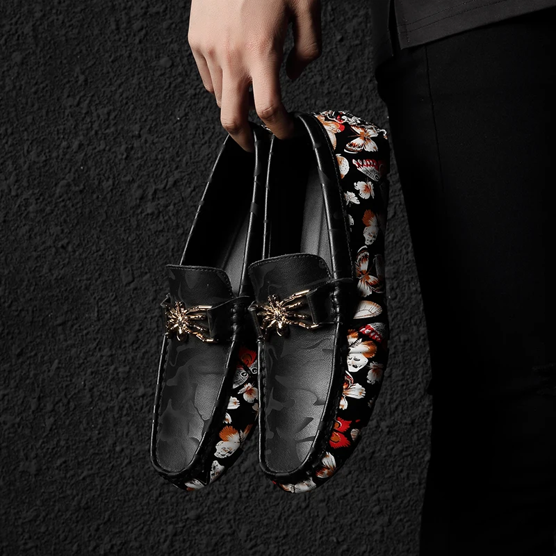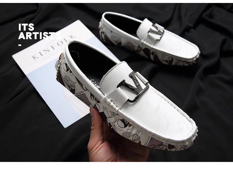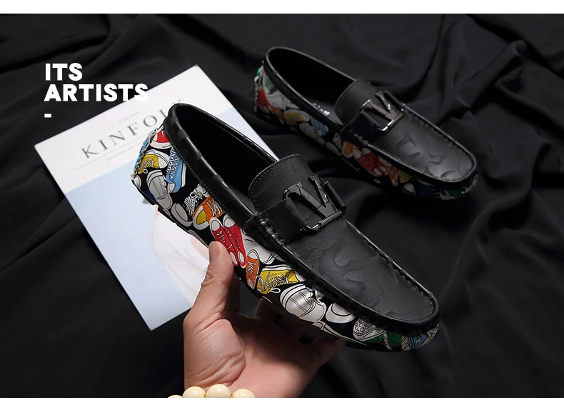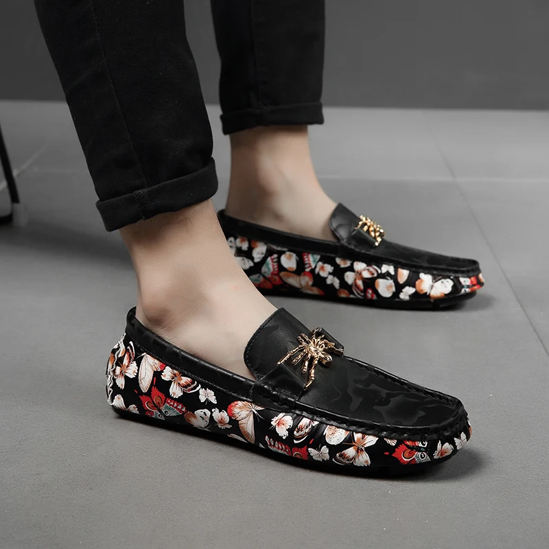 Мужские дизайнерские кожаные туфли с принтом, Повседневные слипоны,...