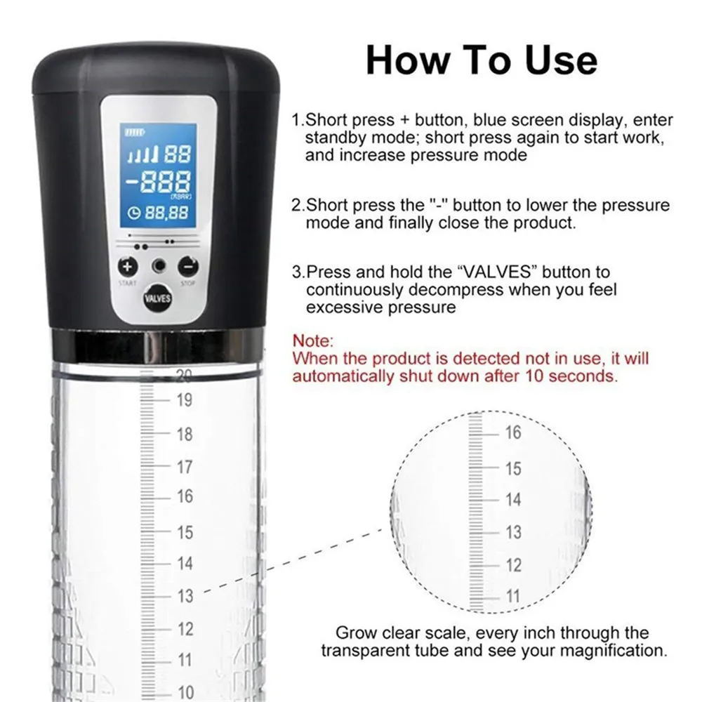 Электрический насос для пениса с ЖК-дисплеем, вакуумный насос, секс...