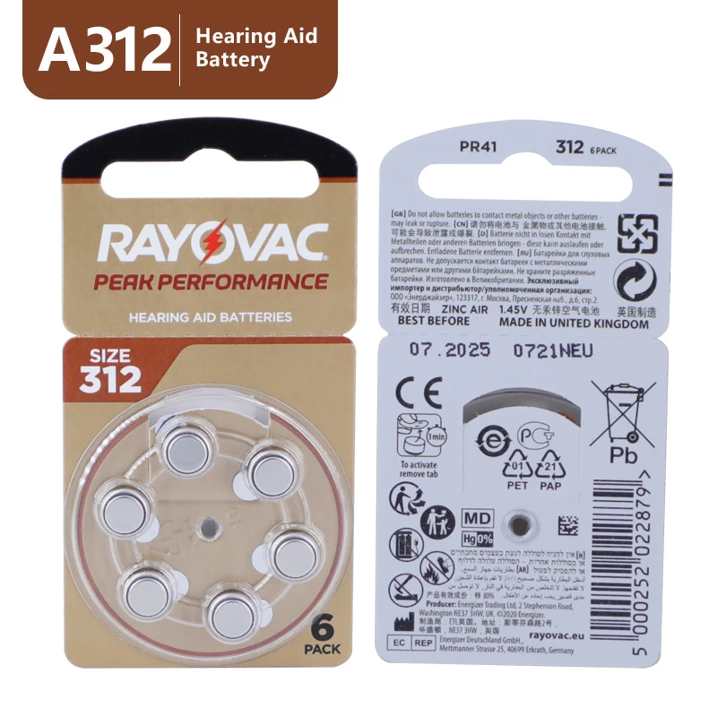 Батареи для слухового аппарата 60 шт.10 карт RAYOVAC PEAK 1,45 в 312 312A A312 PR41 цинковый воздушный Аккумулятор для слуховых аппаратов BTE CIC RIC OE