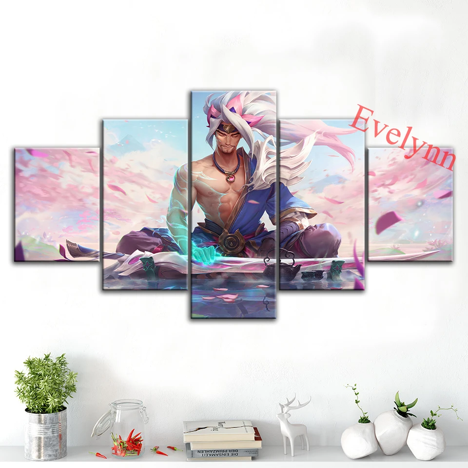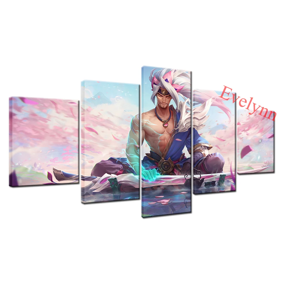 Современные модульные картины на холсте, 5 шт., игра Лига Легенд Yasuo, плакат, настенные художественные принты для гостиной, Декор, картина с рамкой