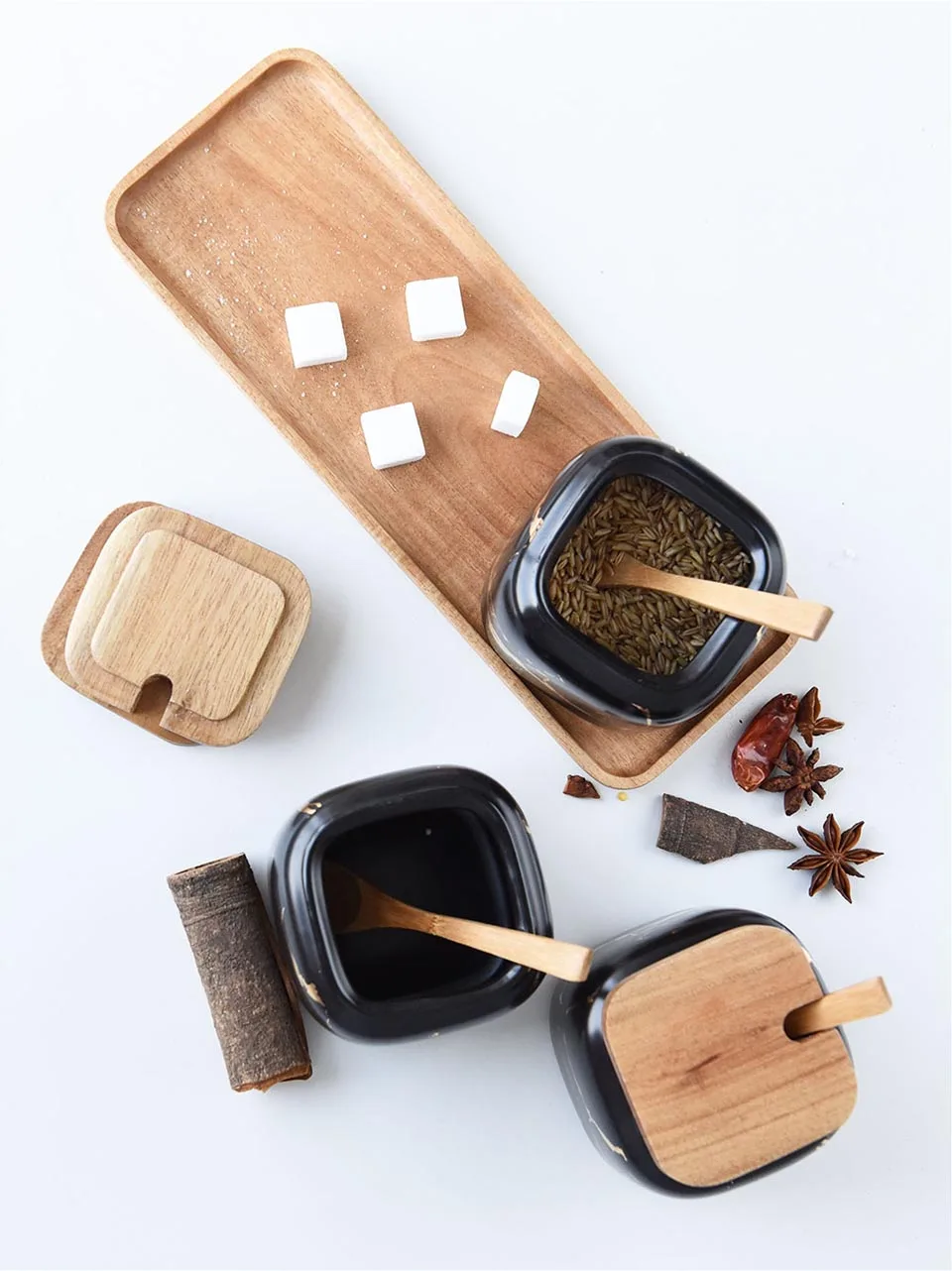 Керамический набор баков для приправ в скандинавском стиле, деревян...