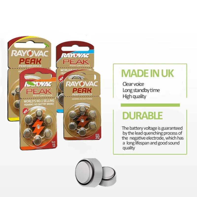 60 шт. аккумуляторные слуховые аппараты A312 A10 A13 A675 RAYOVAC пиковые цинковые воздушные батареи для усилителя звука долговечные