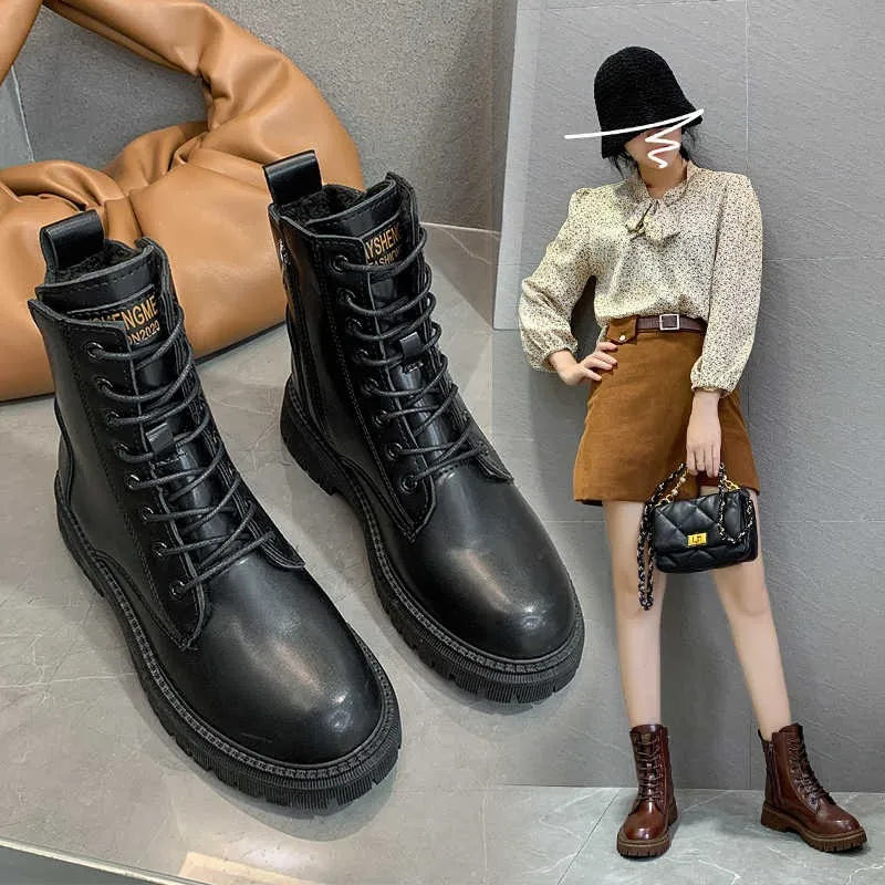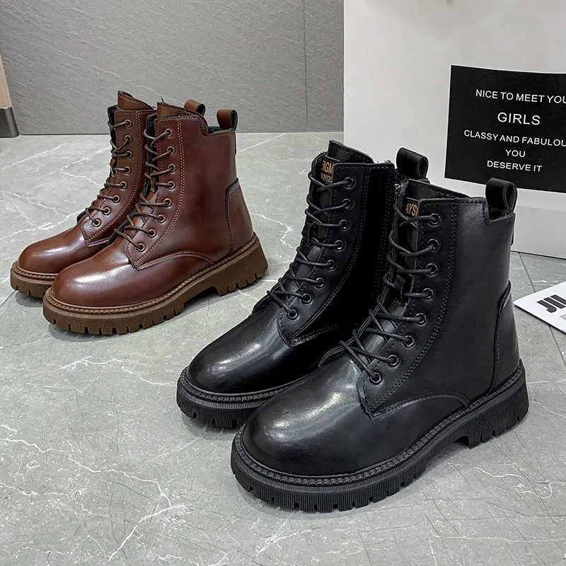Пикантные женские полусапожки на толстой подошве, женские короткие коричневые вечерние туфли на шнуровке спереди, Женская стильная обувь 2021
