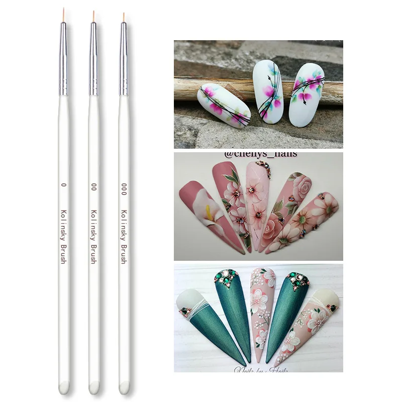 3 шт.компл. кисть для ногтевого дизайна, кристалл, акриловая тонкая фотография, рисунок, полосы, цветок, 2 боковые элементы, материал