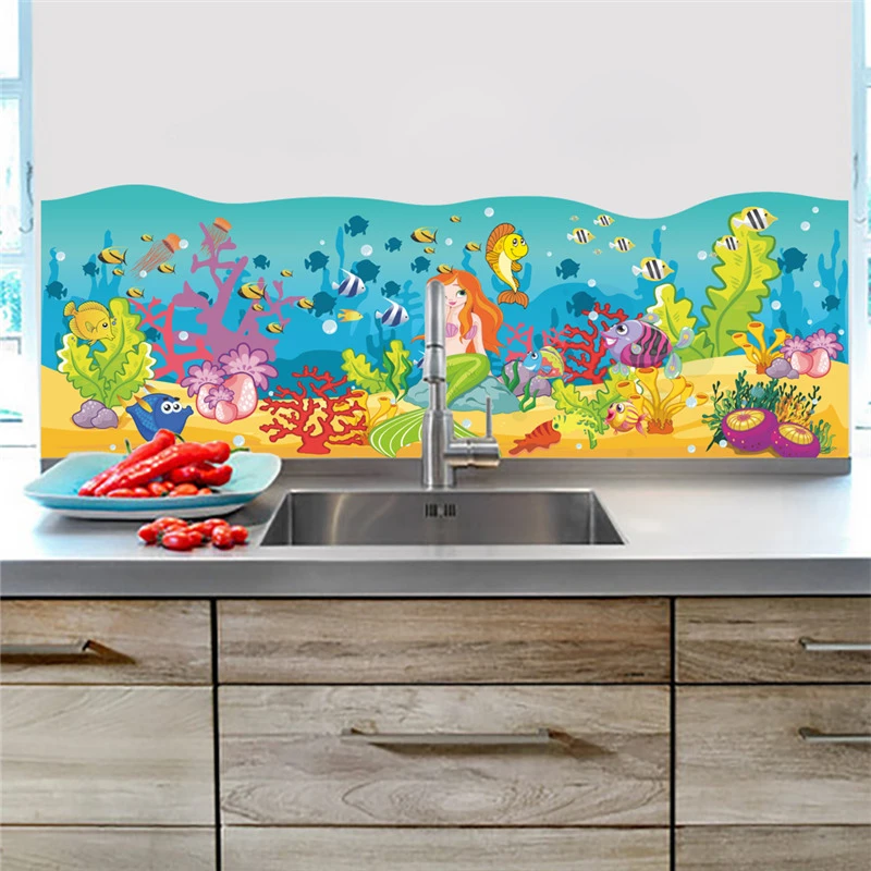 Настенные водонепроницаемые наклейки из ПВХ с изображением рыб и русалок