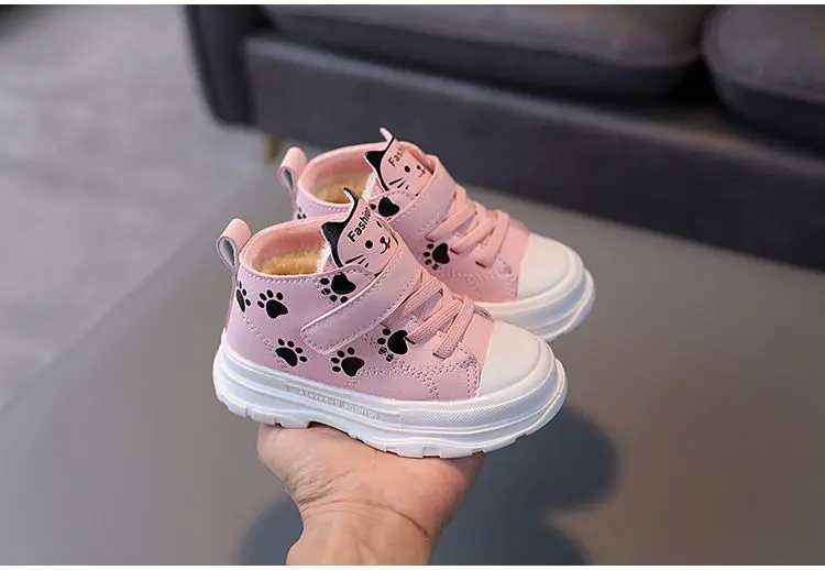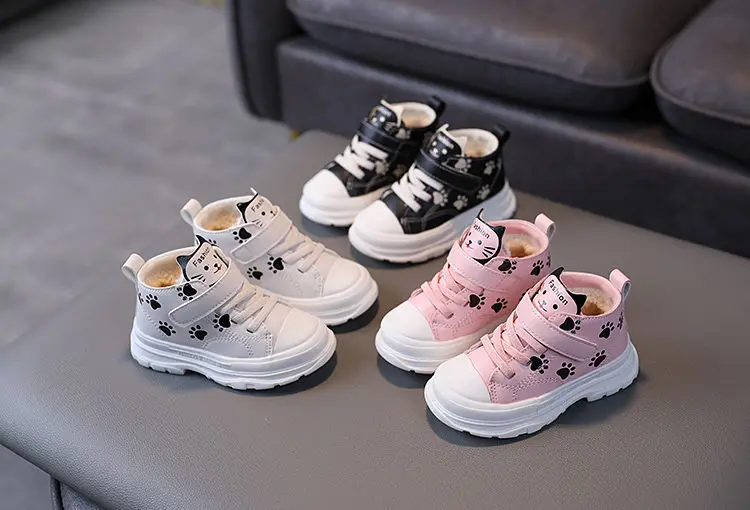 Зимние ботинки из искусственной кожи для девочек, водонепроницаемые детские ботинки, модная обувь на липучке с принтом, римские ботинки Martin для маленьких девочек, зима 2021