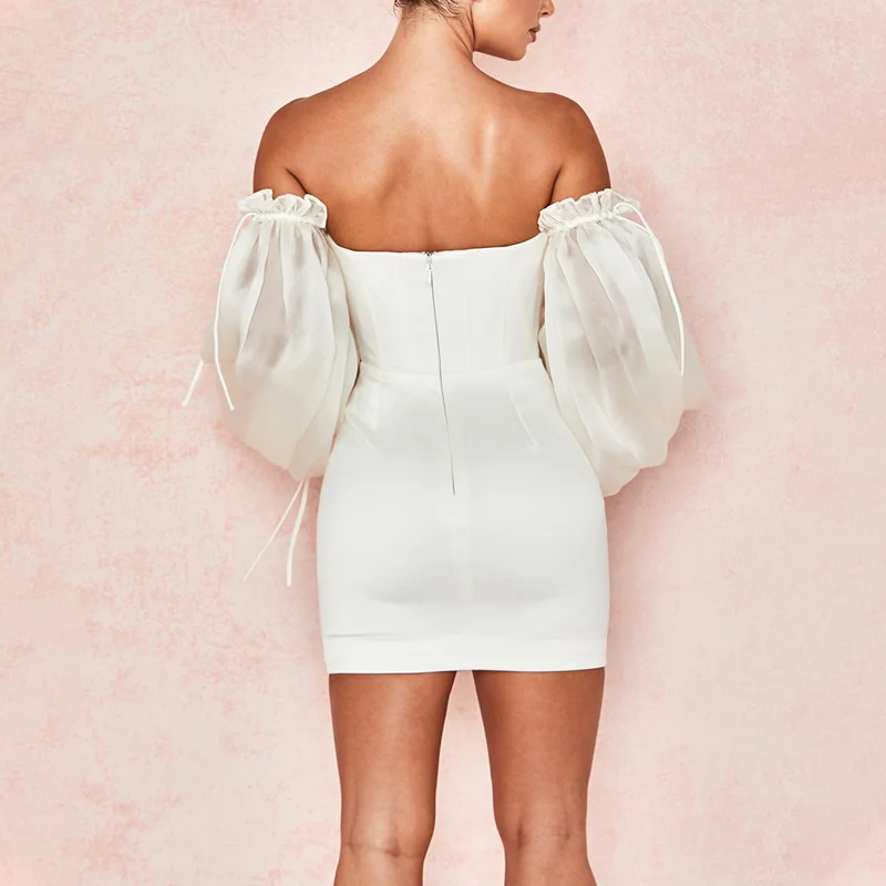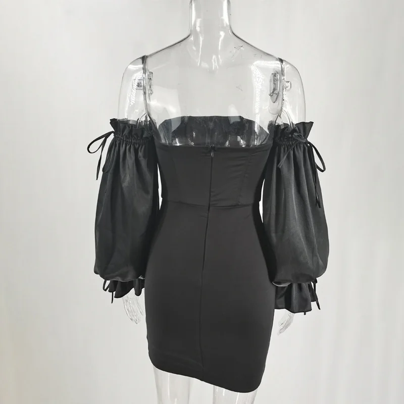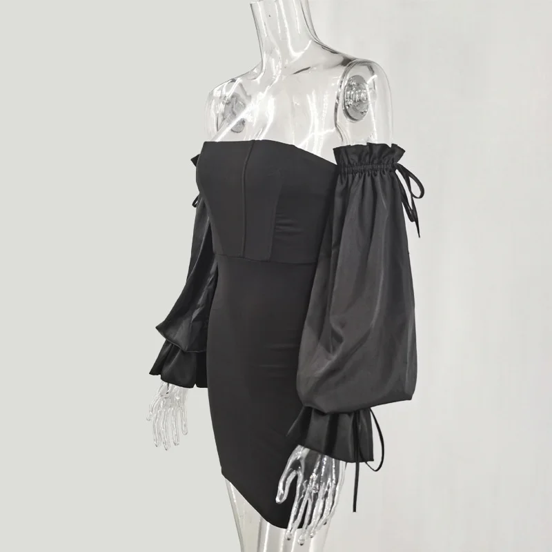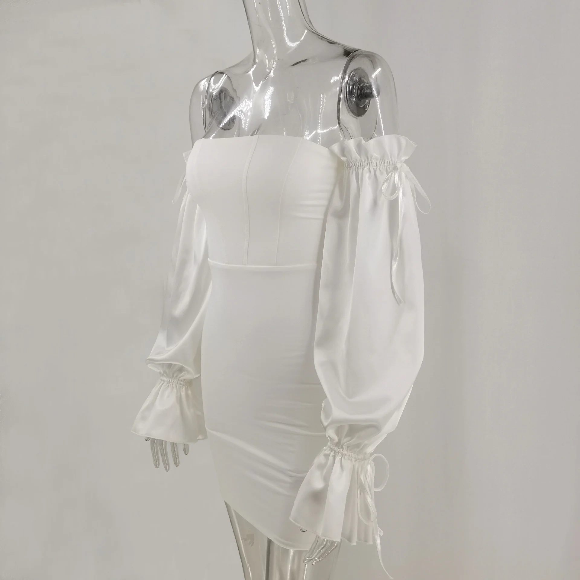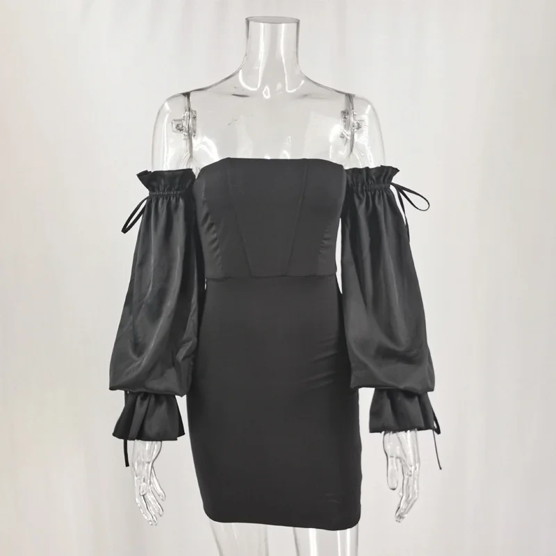 Женское атласное платье, короткое платье с открытыми плечами, рукавами-фонариками и нагрудной подкладкой для ночного клуба, осень 2021