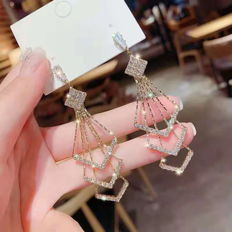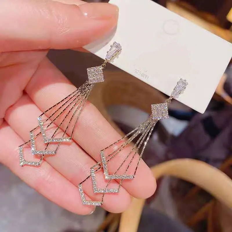 Южнокорейские длинные серьги Dongdaemun Advanced Sense с бриллиантами и бахромой, 2021, новые темпераментные серьги из красного серебра с сеткой