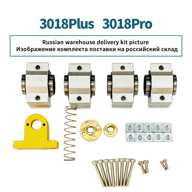 Новинка и высокое качествоSCS12VUU: подходящий диаметр оптической оси изделия составляет 12 мм, а свинец винта T8-4 мм (один круг-4 мм)SCV10VUU: подходящий диаметр оптической оси продукта составляет 10 мм, а свинец винта T8-4 мм (например, CNC3018, CNC3018PRO)CNC 3018 plus содержит:4 SCS12VUU1 T8 гайка сиденья1 Набор медных гаек T810 скользящая гайка M4-208 винтов с шестигранной головкой M4-302 шестигранные винты M4-122 шестигранные винты M3-10CNC 3018 pro содержит:4 SCV10VUU1 T8 гайка сиденья1 Набор медных гаек T810 скользящая гайка M4-208 винтов с шестигранной головкой M4-252 шестигранные винты M4-122 шестигранные винты M3-10Материал: металлЦвет: серебристый + золотойПосылка:1 комплект * комплект обновления подшипникаТолько вышеуказанная посылка, другие товары не включены.Примечание: светильник и различные дисплеи могут привести к тому, что цвет товара на картинке немного отличается от реального. Допускается погрешность в измерениях +/- 1-3 см.