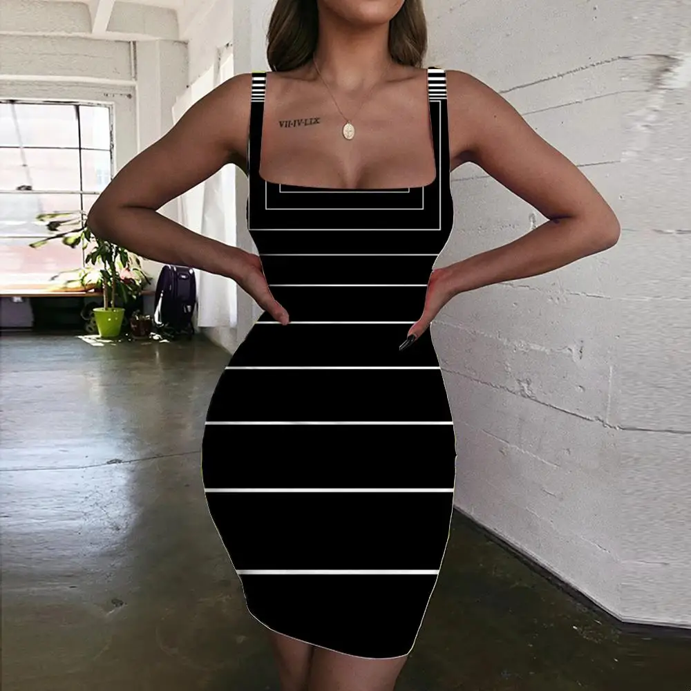 Женское Короткое платье KYKU, черно-белое облегающее платье в полос...