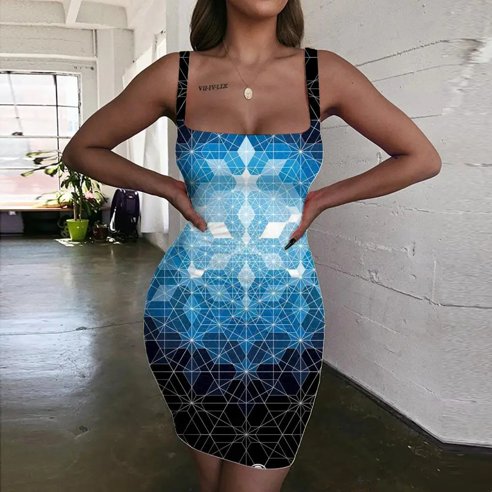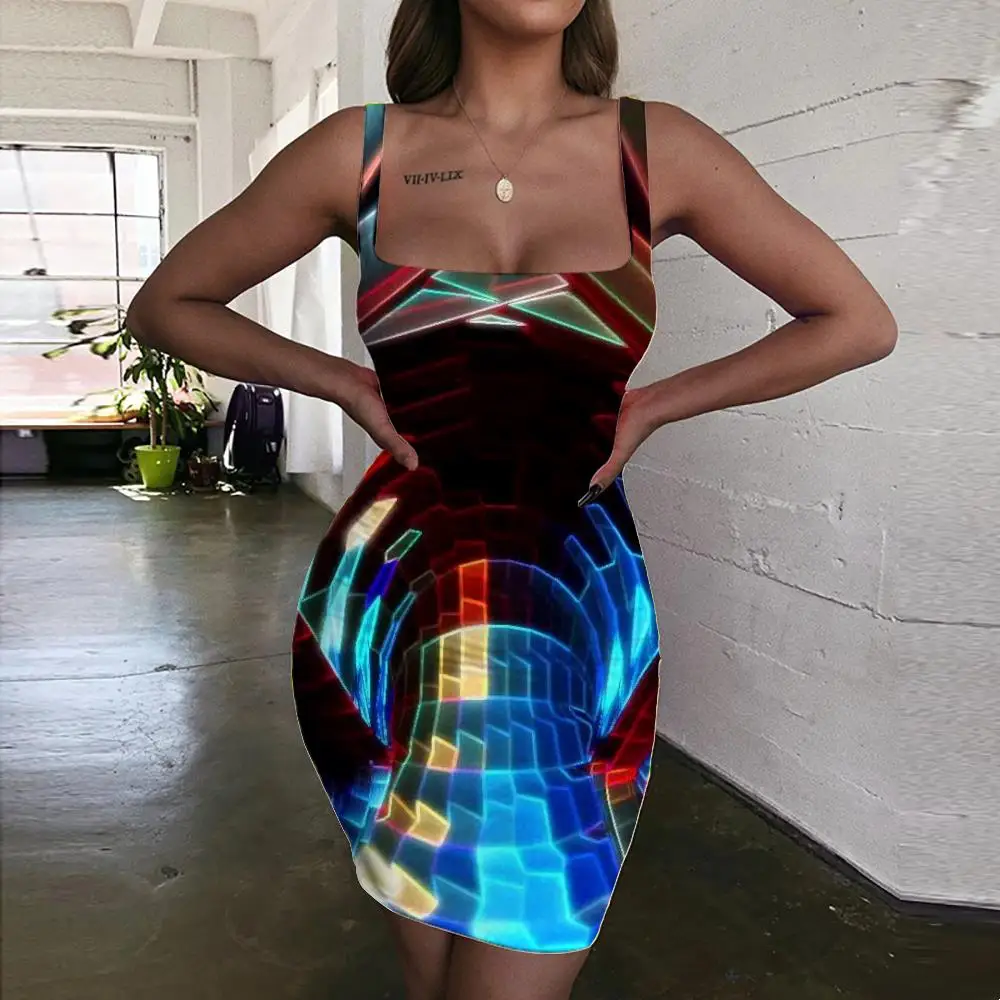 Платье женское неоновое с абстрактным 3D-принтом, на бретелях