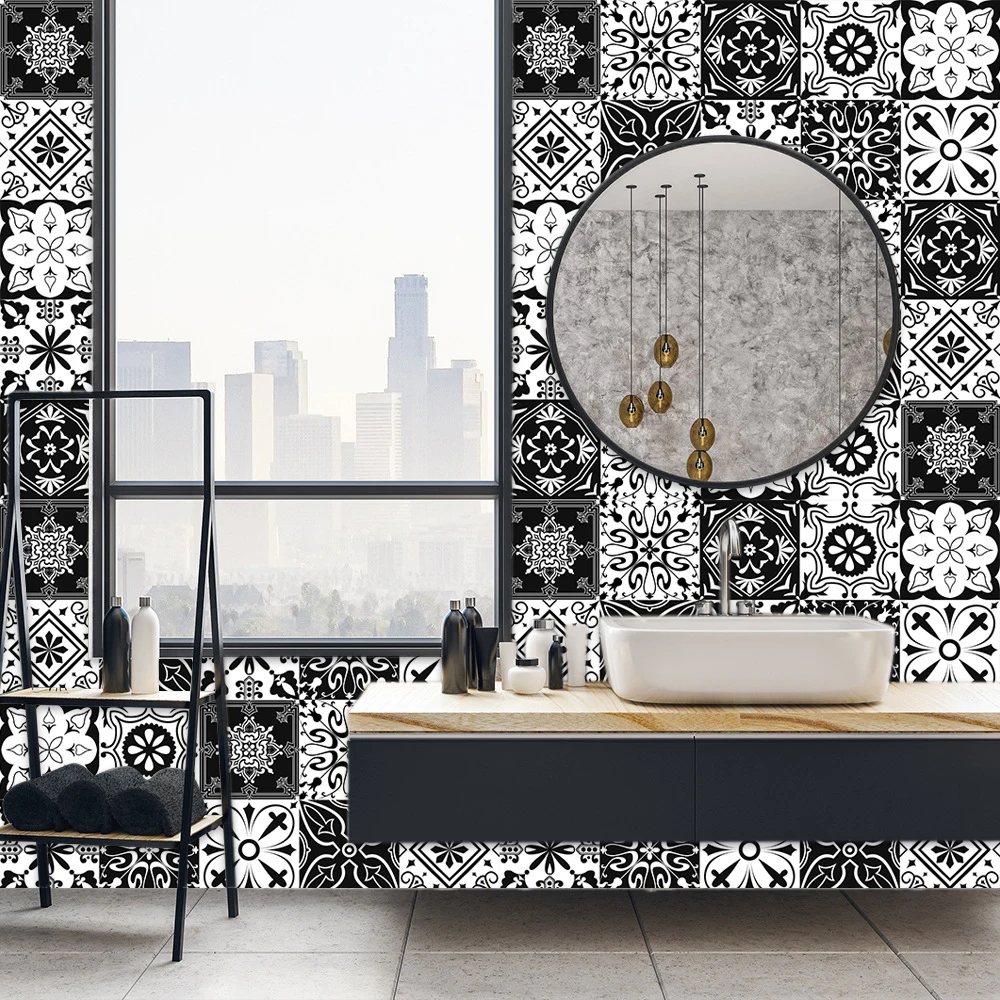 10 шт. черно-белый матовый стикер для настенной плитки Переносные Чехлы для кухонного пола шкаф для гостиной художественный Декор носимый постер