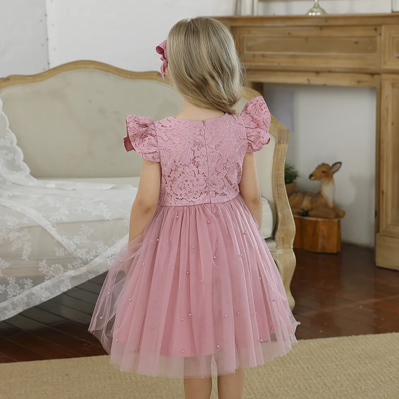 Летние кружевные платья для девочек, розовое вечернее платье-пачка,...