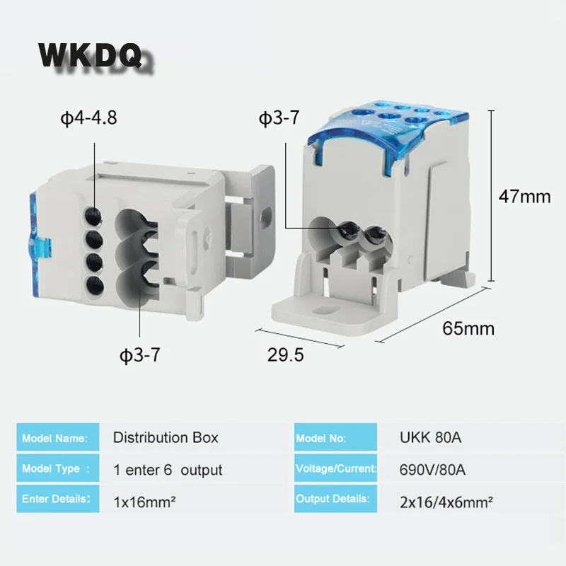 UKK80A UKK 80A распределительная коробка 1 в 6, наружный однополярный провод, электрический разъем, Клеммная колодка на Din-рейку, распределительная коробка питания, 1 шт.