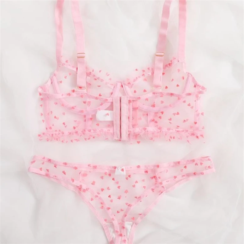 Женский комплект нижнего белья, прозрачный бюстгальтер с сердечками + трусики