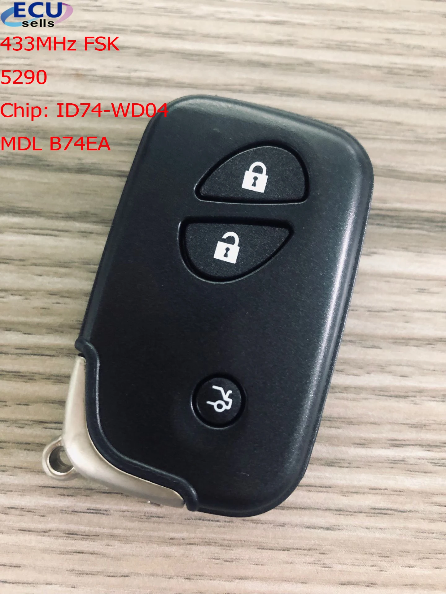 Плата PCB 433 с 3 кнопками, 5290 МГц, чип ID74, БЕСКЛЮЧЕВОЙ ключ для Lexus CT200H RX350 RX450H, замена MDL B74EA