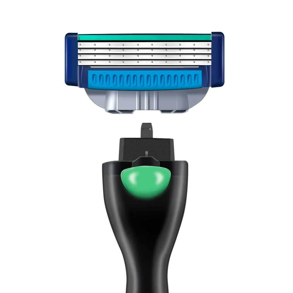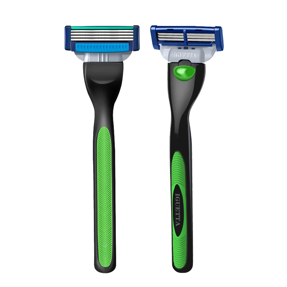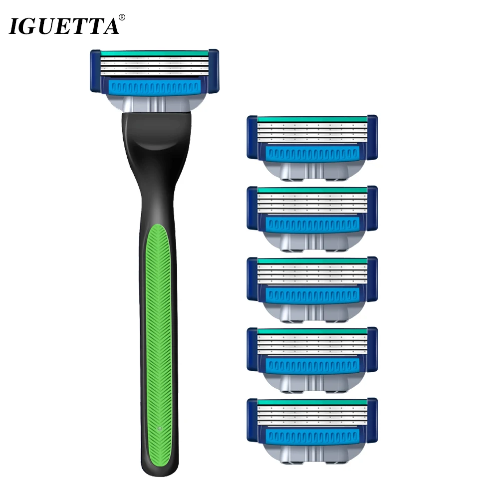 Новая зеленая комбинированная бритва RZR IGUETTA (1 ручка и 6 головок), Классическая бритвенная головка из нержавеющей стали, мужской бритвенный набор