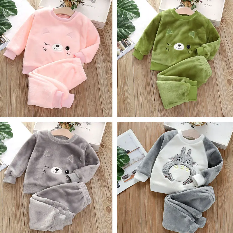Пижамный комплект Totoro для мальчиков и девочек, одежда для сна, детская фланелевая одежда для сна с мультяшным рисунком, новинка на осень и зиму, теплая Детская домашняя одежда