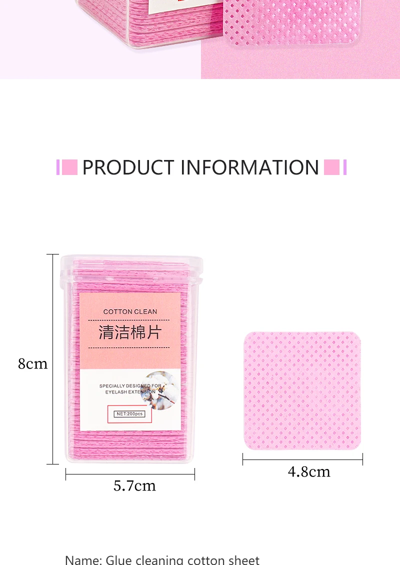 200 шт., безворсовые салфетки для снятия клея с ресниц