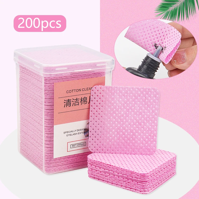 200 шт., без ворса, бумажные хлопковые салфетки для удаления клея для ресниц, протирание, чистый хлопок, лист для ногтей, очищающие накладки для ногтей, инструменты для маникюра