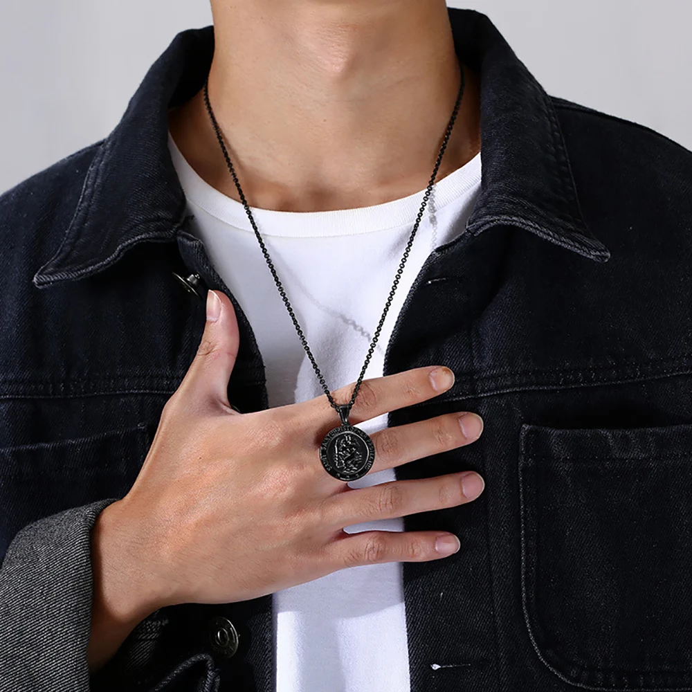 Черный религиозный христофер св. Кристофер перенес Иисуса через реку кулон ожерелье ювелирные изделия подарок для Него