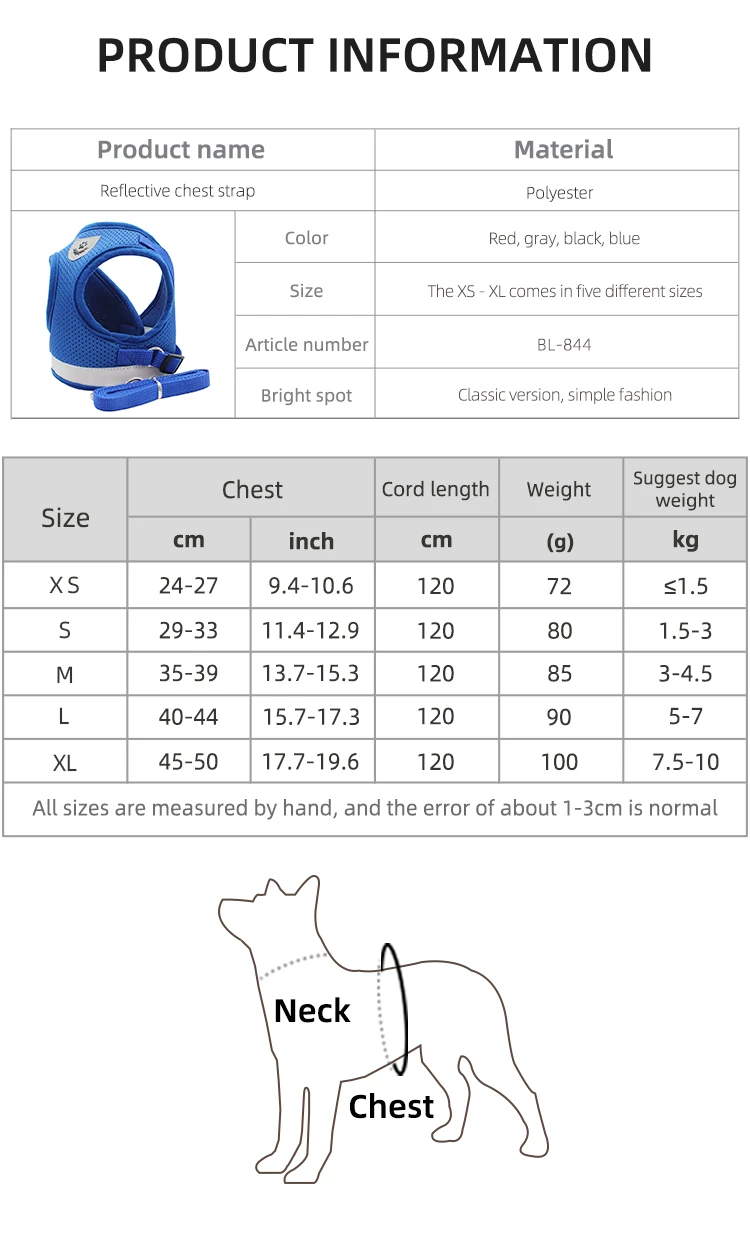 Шлейка для собак с поводком, летняя Регулируемая Светоотражающая жи...