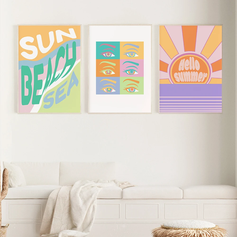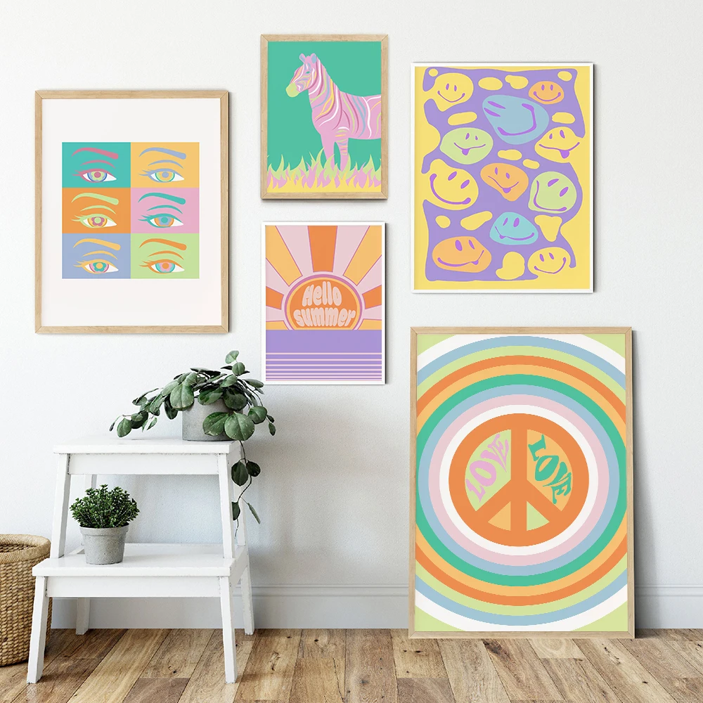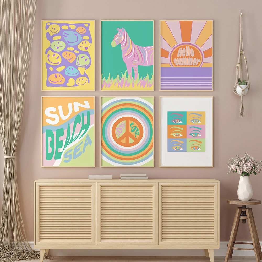 Красочные печатные плакаты в стиле бохо, ретро, мультяшное настенное искусство, пастельные цитаты, Картина на холсте, нордическая детская комната, Офисная настенная декоративная картина