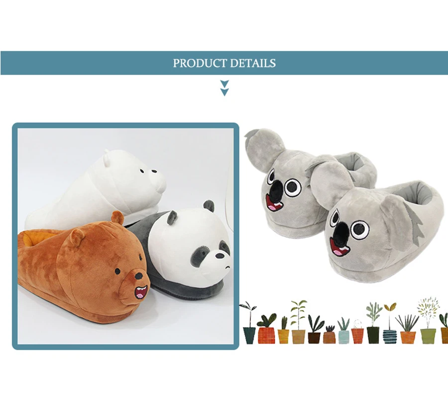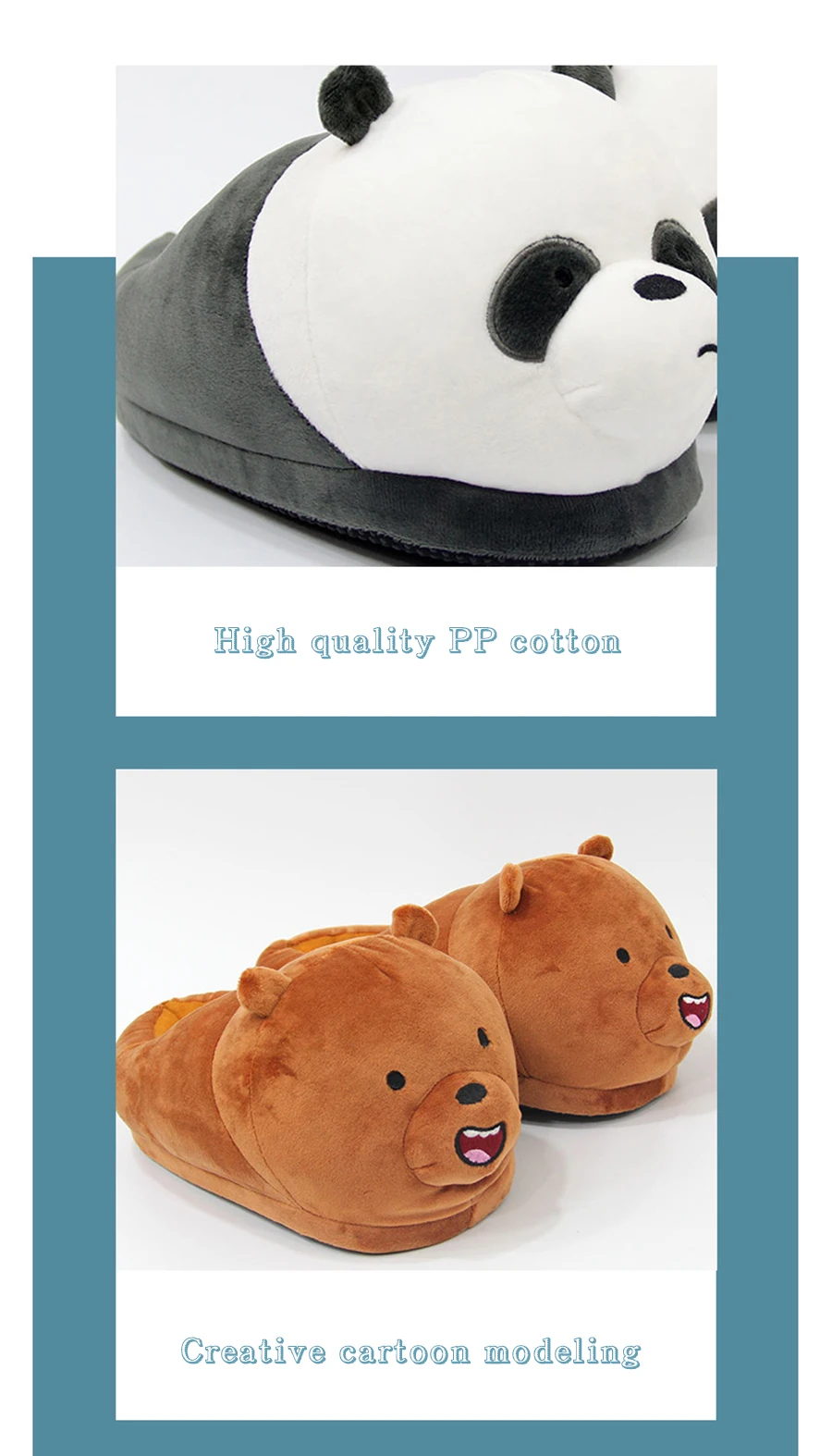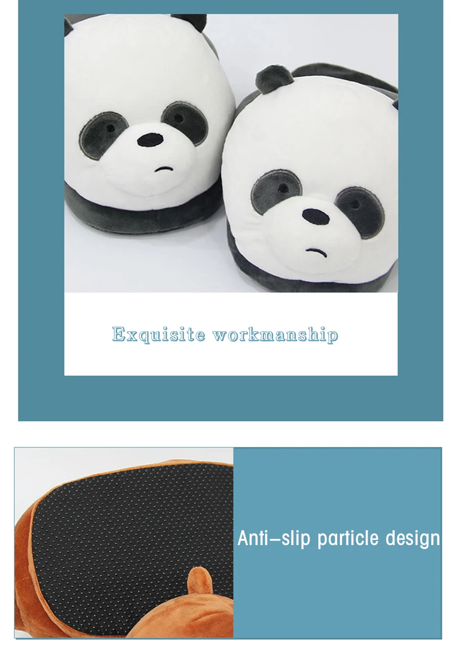Тапки в виде панды, зимние Нескользящие, плоские, мультяшный рисуно...