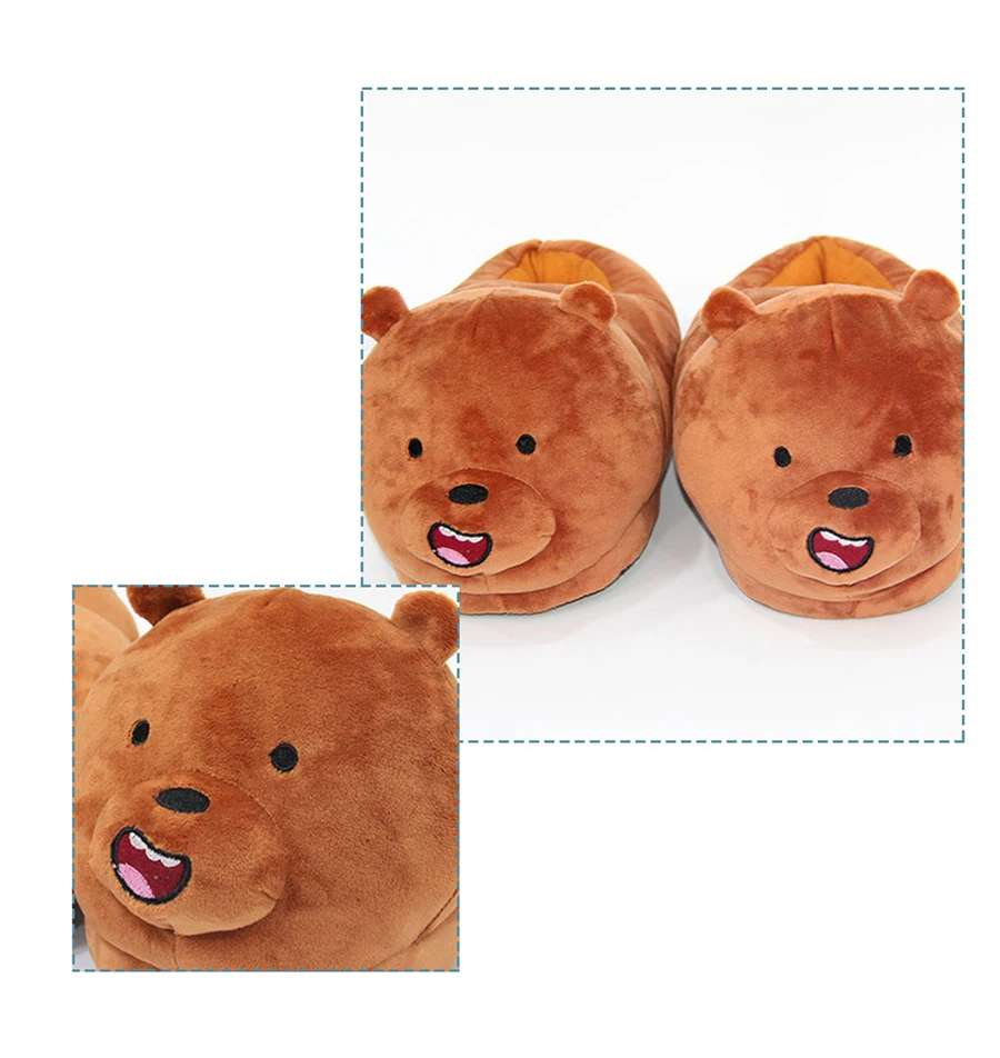 Тапочки-шлепанцы унисекс, плюшевые, зимние, с рисунком медведя из м...