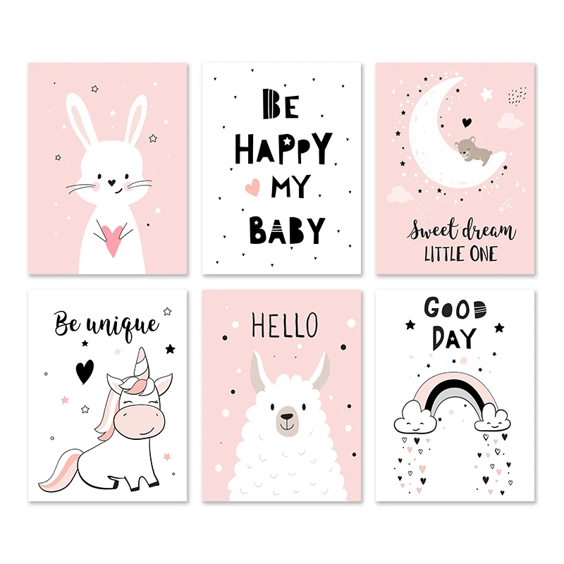 Милый кролик, кролик, лама, единорог, детская комната, стена, искус...