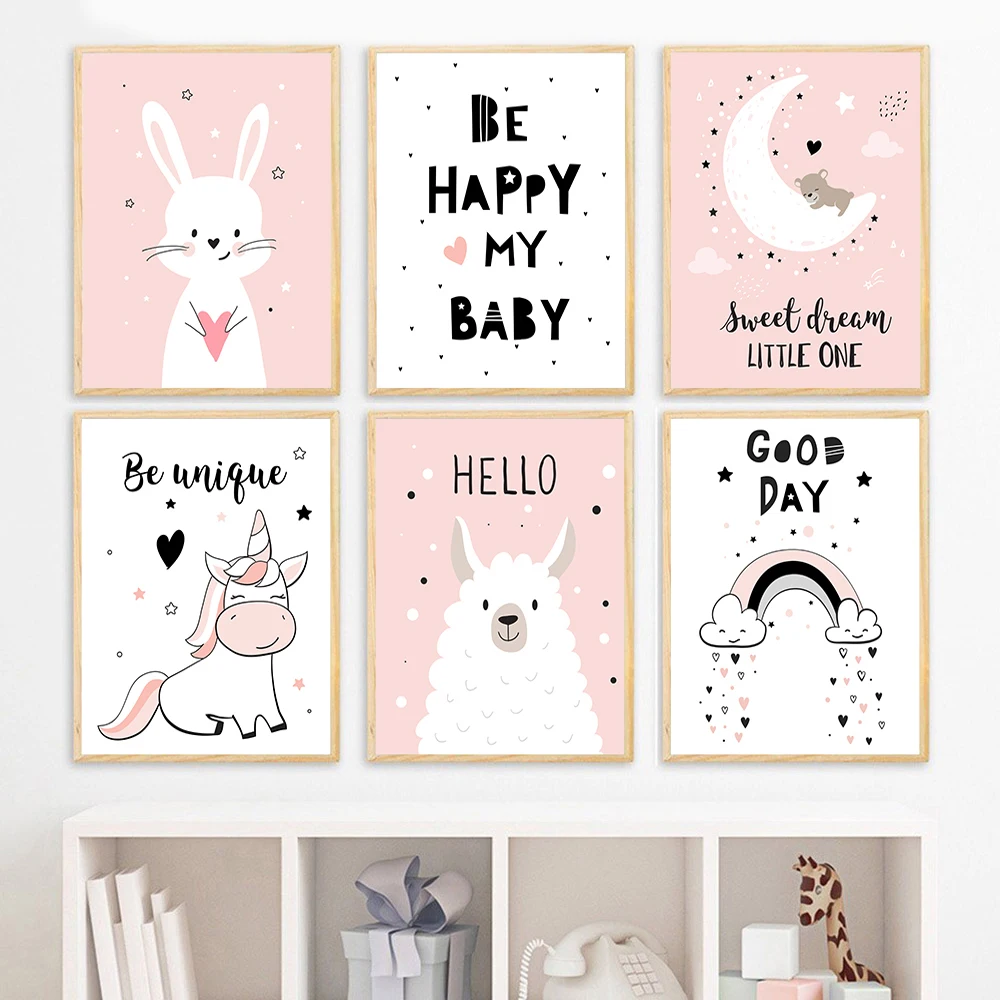 Милый кролик лама Единорог детская комната настенное Искусство быть счастливым холст плакат печать скандинавский ребенок картина Декор детской комнаты