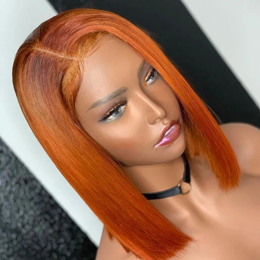 Прямой парик из человеческих волос с кружевом спереди, имбирный ора...