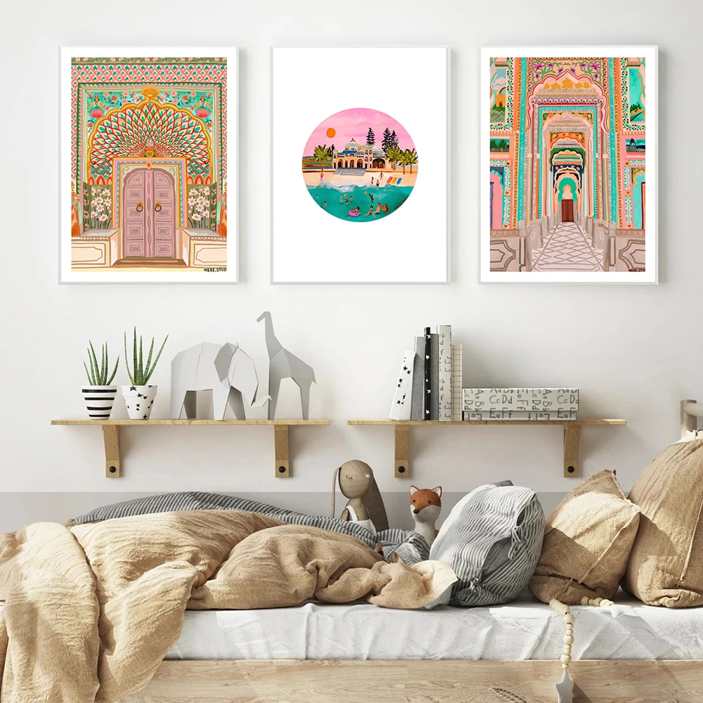 Марокканские настенные плакаты с изображением роз лотоса, ворот, ла...